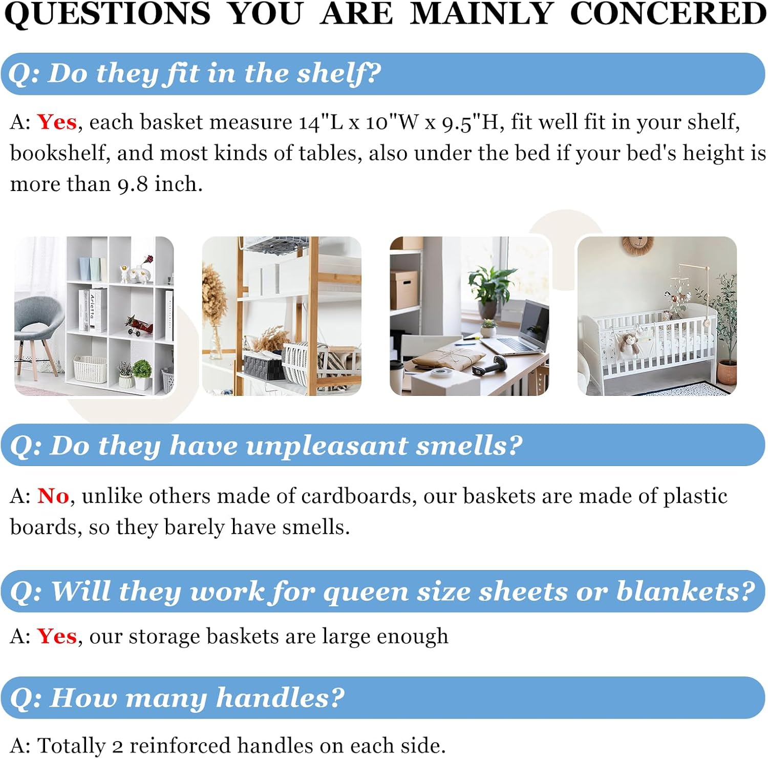 • 【MULTI-PURPOSE】 Our 6 pcs closet storage bins are home essentials to save storage space and keep everything organized. Large enough baskets for organizing clothes, kid’s toys, nursery room items, extra linens, laundry, towels, sheets, pantry and more.