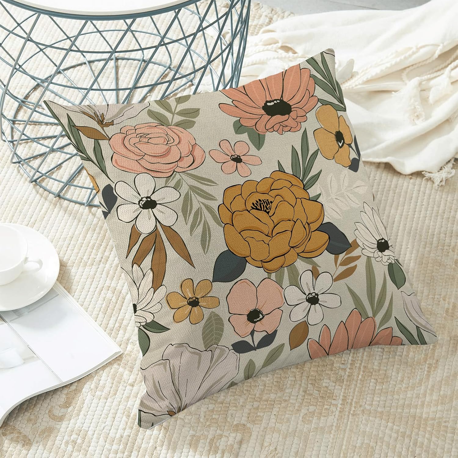 • 【Spring Pillow Covers】 Our floral throw pillow covers 18x18 inch are made of excellent breathable polyester linen fabric. The cream decorative pillow covers is durable, soft and skin-friendly. The plant outdoor pillow covers adopt exquisite edging technology and four sides of our floral pillow covers are sewn firmly, which is not easy to open the line.