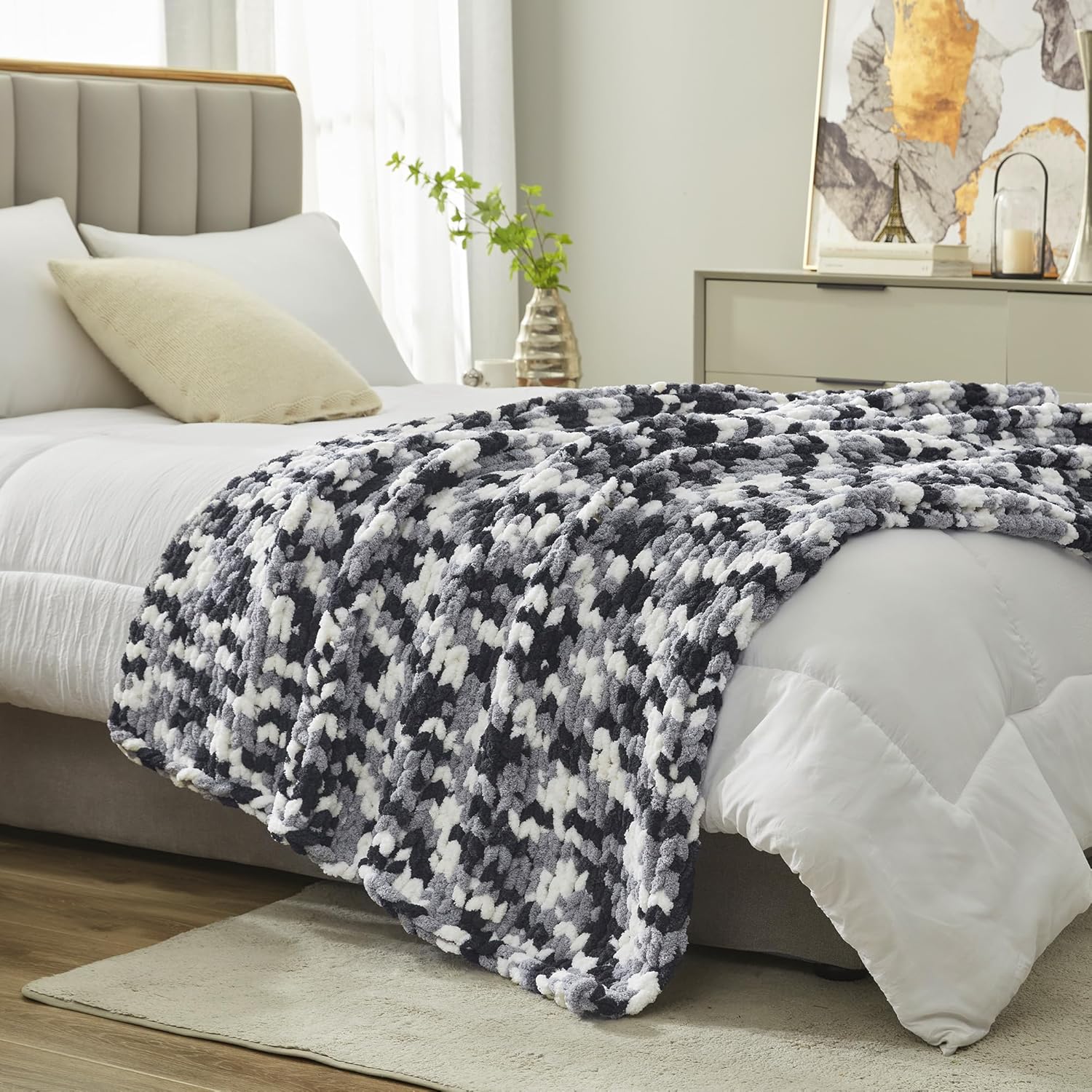 • CHUNKY HAND-KINT TEXTURE: This chenille throw blanket mimics the look of handmade chunky knit blankets with its oversized rope-like yarns . Each deep stitch creates a tactile, lofted texture that elevates sofas, beds, or nursery chairs instantly.