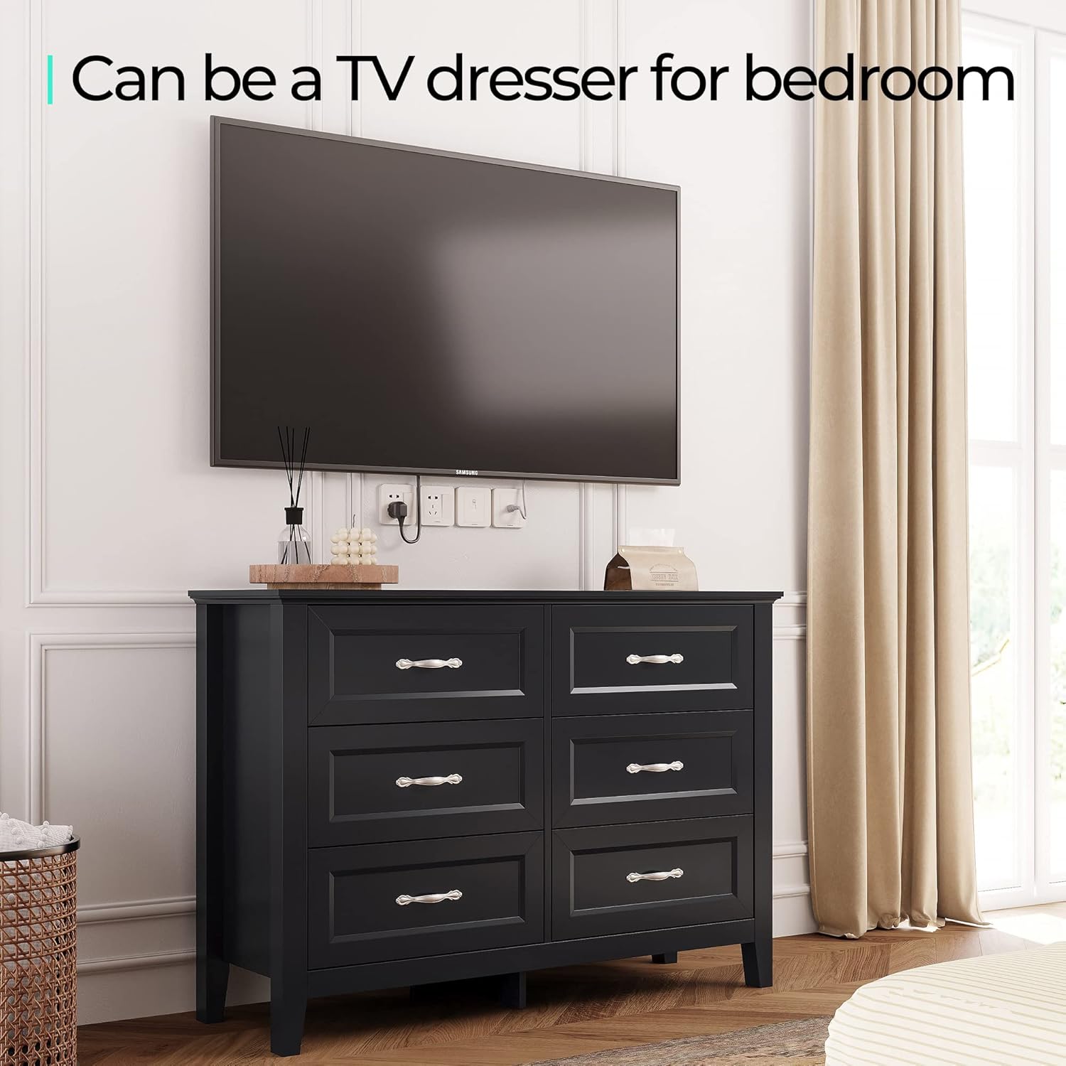 • [MULTIFUNCTIONAL STORAGE MASTER] This accent dresser features 6 spacious drawers for clothes, books, and other items, offering both practicality and visual appeal. this classic farmhouse dresser can be placed in various spaces—guest room for essentials, entryway for keys and leash, or even as a living room TV stand, showcasing both style and functionality.