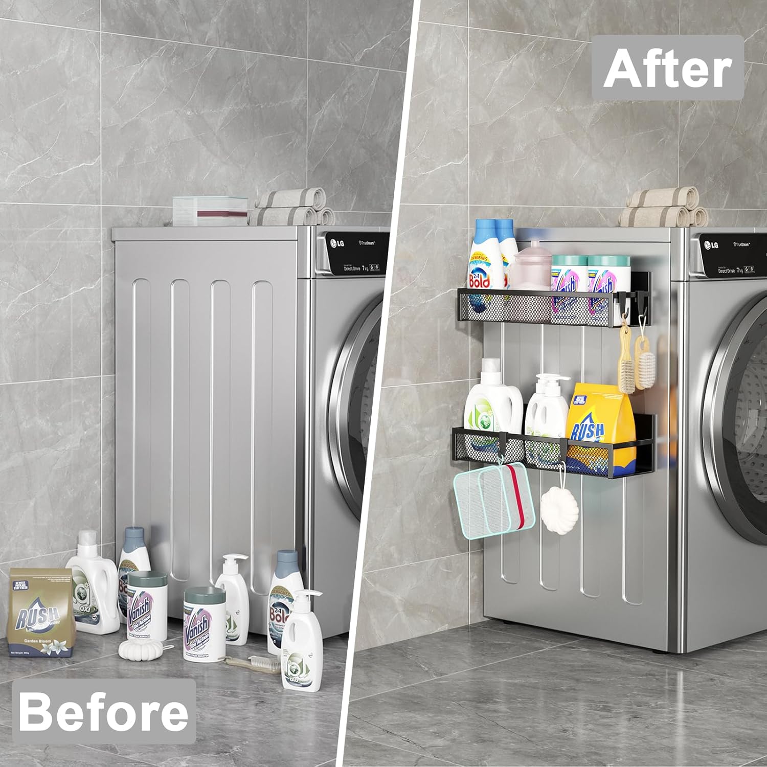 • Perfect Space Saving Solution: Aufworld magnetic basket is a great way to store spices, which hold free up countertop & cabinet space and keep them clear of clutter. Our Magnetic Spice Rack for Refrigerator comes with 2 separate shelves and 4 extra moveable hooks. Practical moveable hooks can be hung with various laundry supplies and kitchen utensils.