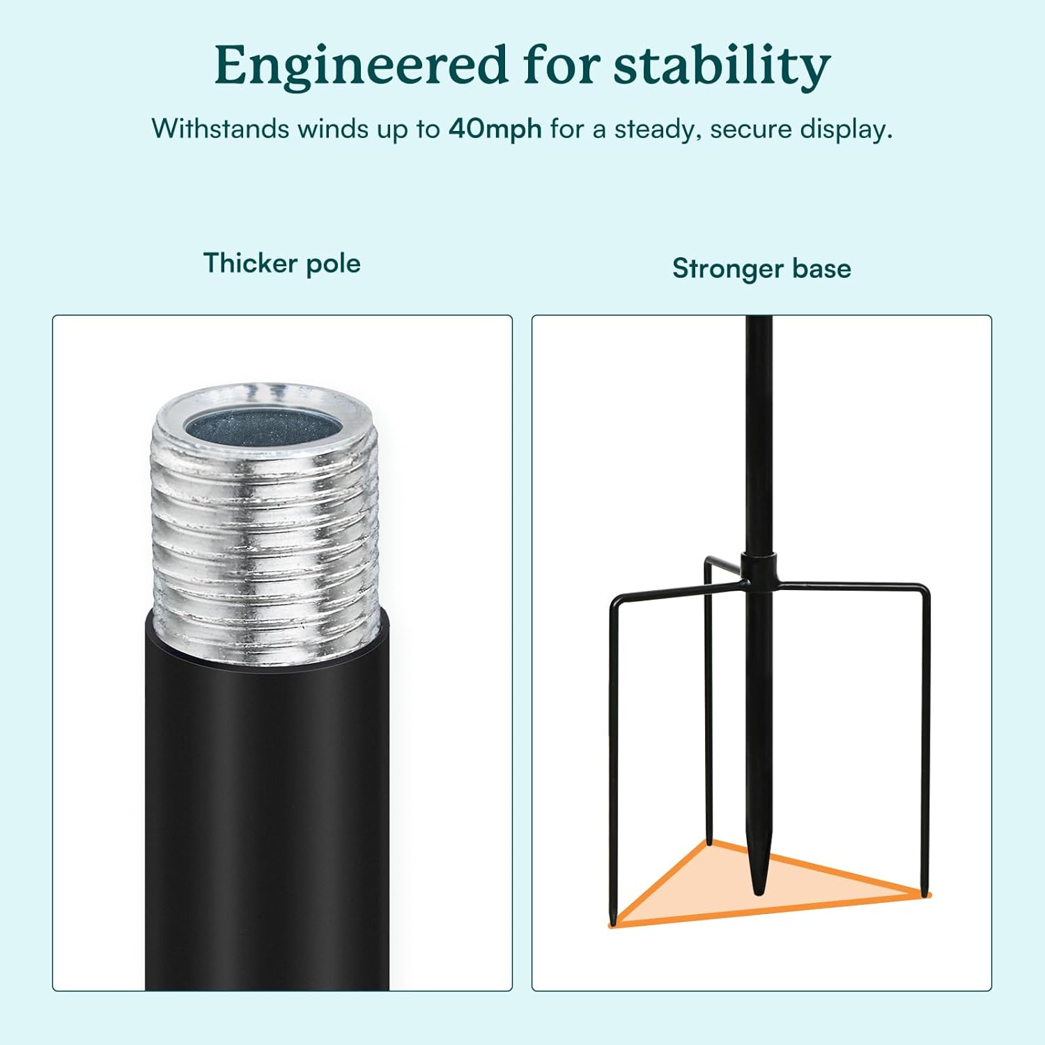 • Precision Ball Bearing and Construction: CyanOasis precision ball bearings allow the spinner to move effortlessly in the slightest winds. The included post has a half-inch central shaft and a quarter-inch four-way stabilizing brace at its base, resulting in a very stable platform to resist windmill from leans and wobbling