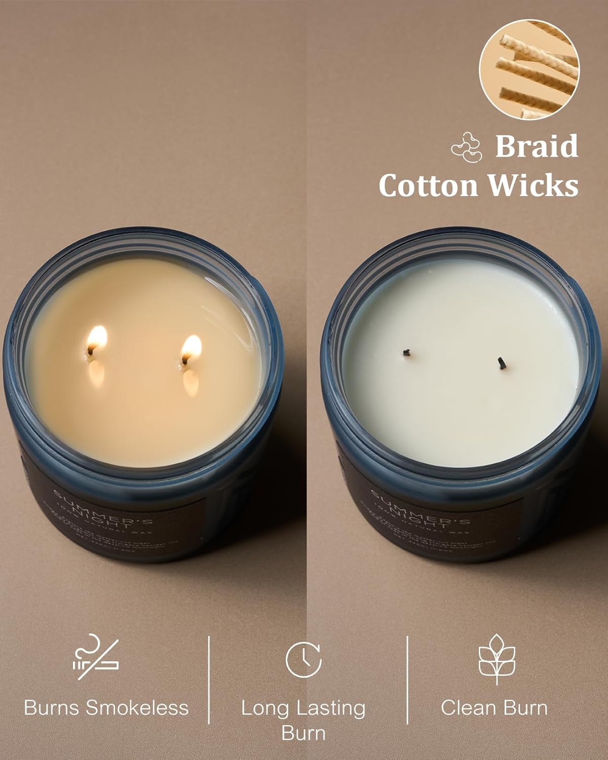 M&SENSE Summer's Night Scented Candle, 11.6oz Natural Soy Wax Clean Non Toxic for Home, Medium 2 Wick Gifts for Men, Up to 70 Hours Burn Time, Manly Candles for Bedroom