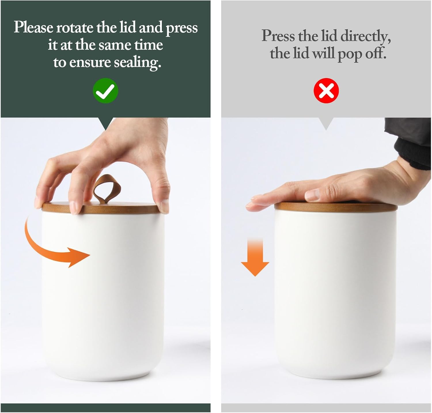 • 3 Different Sizes - Ceramic canister set comes with 3 different capacities, the height and diameter are 6.7" x 4.7"; 5.7" x 4.2"; 3.2" x 3.4". Large ceramic canister size 45 oz, medium ceramic canister size 30 oz, and small ceramic canister size 10 oz.