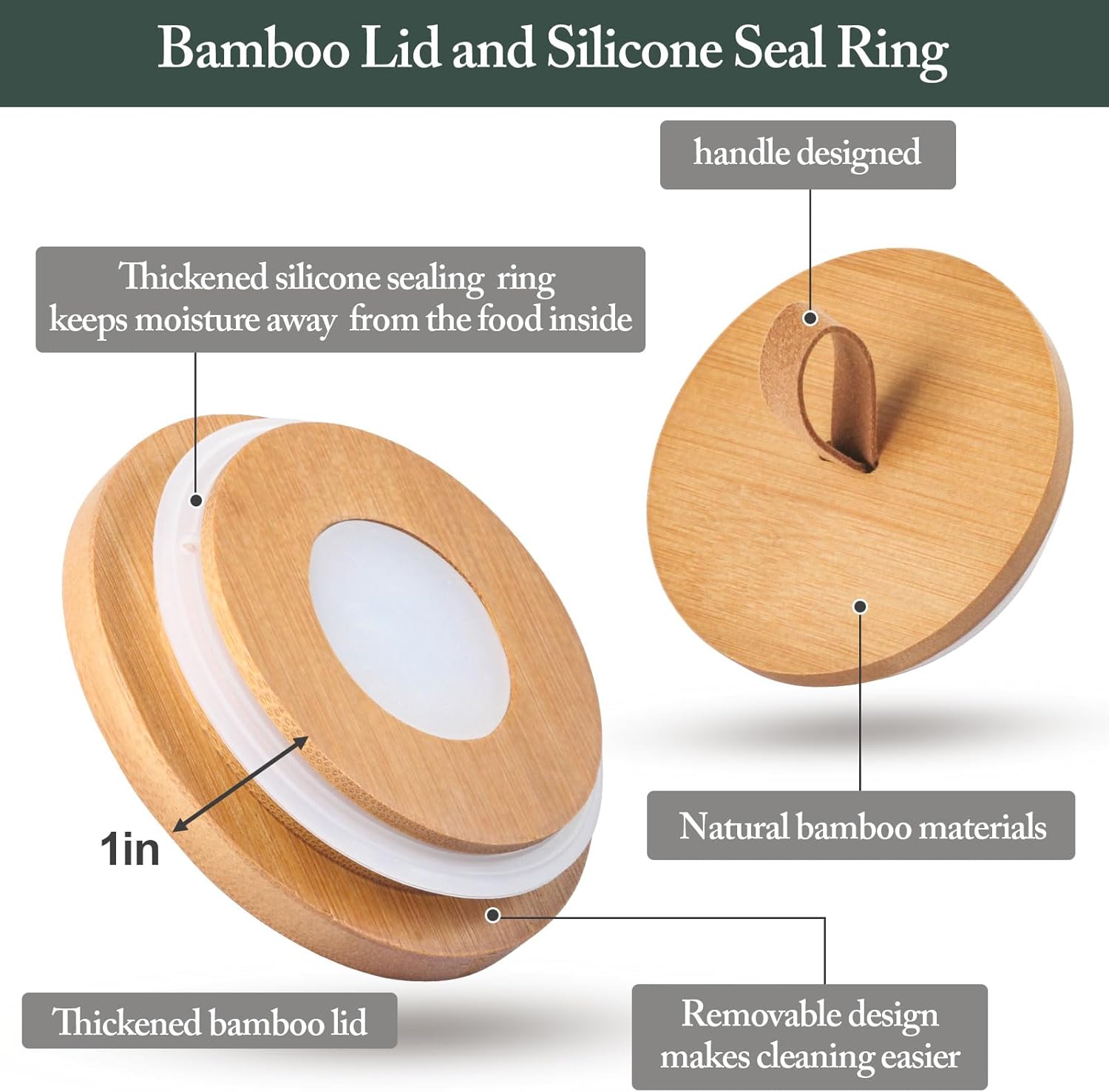 • Wide-mouth Jars - Kitchen canisters feature wide mouth design, easy to store and take out the food. Designed with bamboo lid and rubber gasket clamp to ensure a leak-proof and airtight seal, keep your food dry and fresh for a long time.