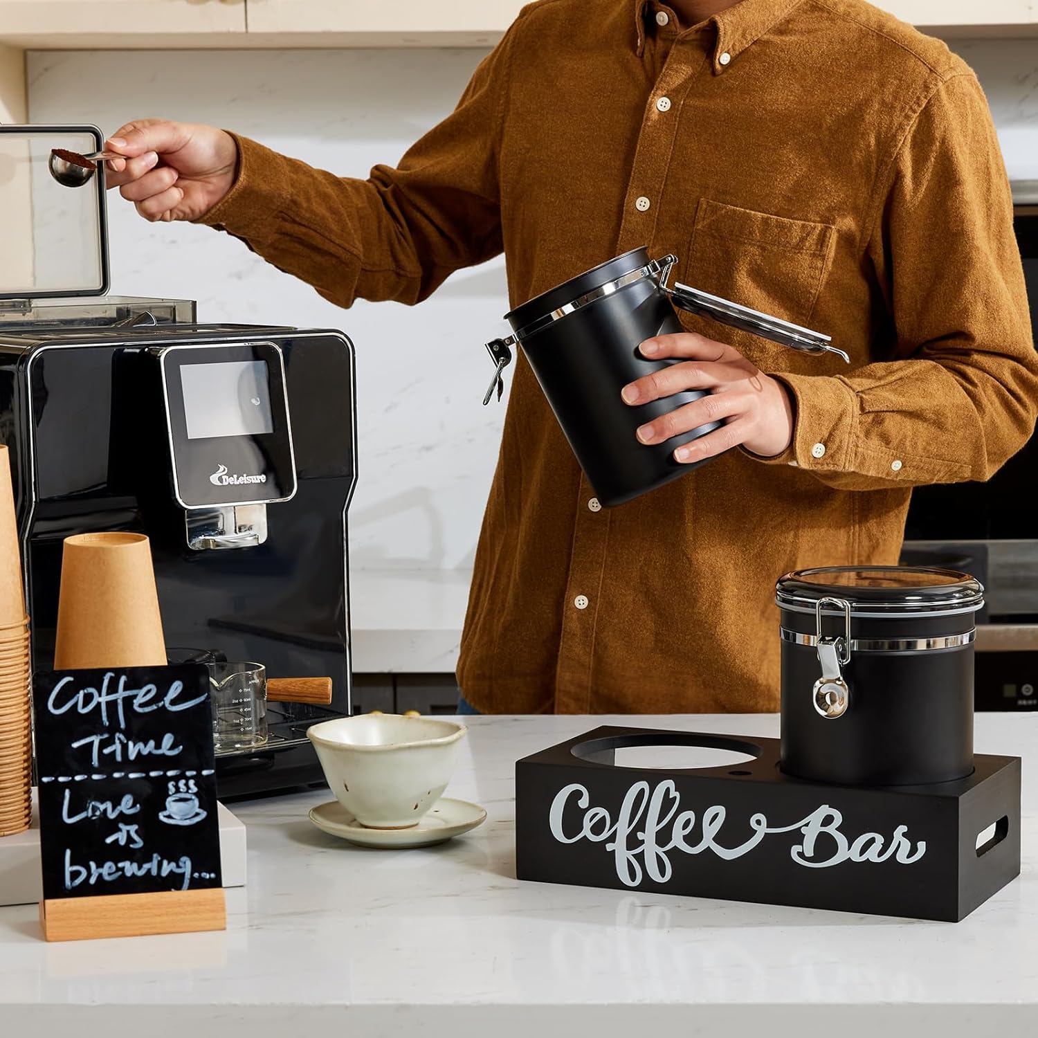 • KEEP THE DESKTOP TIDY: The coffee Containers set includes a wooden storage shelf and a Silver iron coffee spoon, which not only facilitates users to organize and categorize similar foods, make the desktop more tidy, and use the cans more conveniently, but also can decorate your desktop and let Your desktop is no longer monotonous.