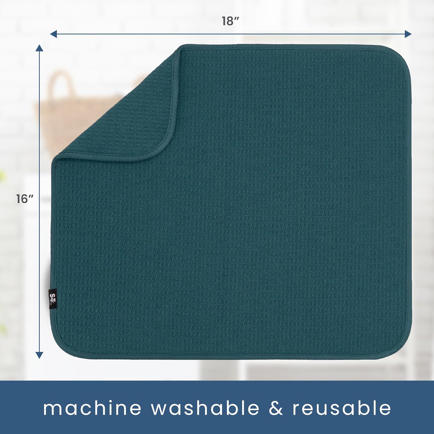 • One S&T INC. Microfiber Dish Dry Mat measuring 16 in. x 18 in.; kitchen mat for countertop absorbs up to 4 times its weight in water to keep your countertop dry, unlike a silicone dish drying mat