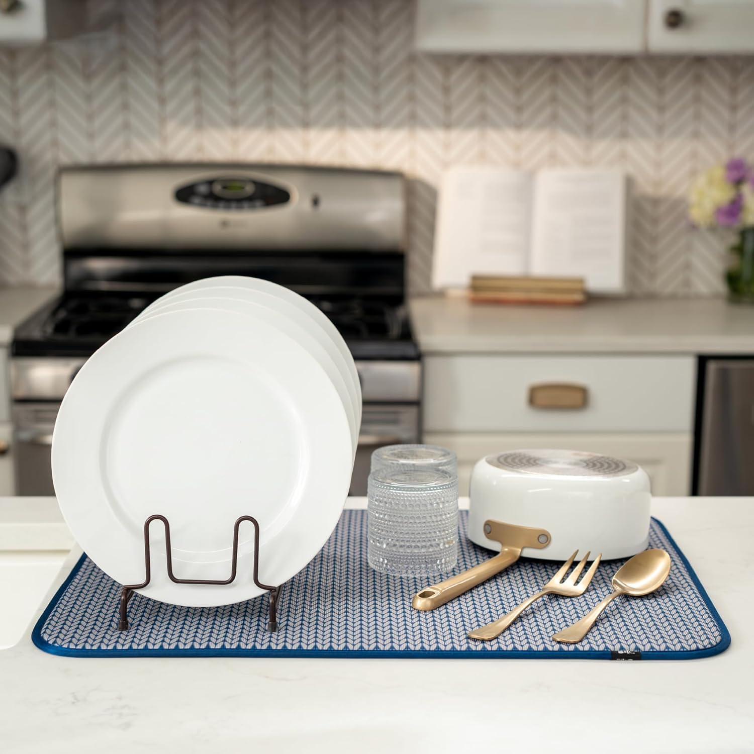 • Dish drying mats for kitchen counter are reusable, machine washable, and easy to store for kitchen organization; durable construction will not chip or break like a stone dish drying mat for kitchen