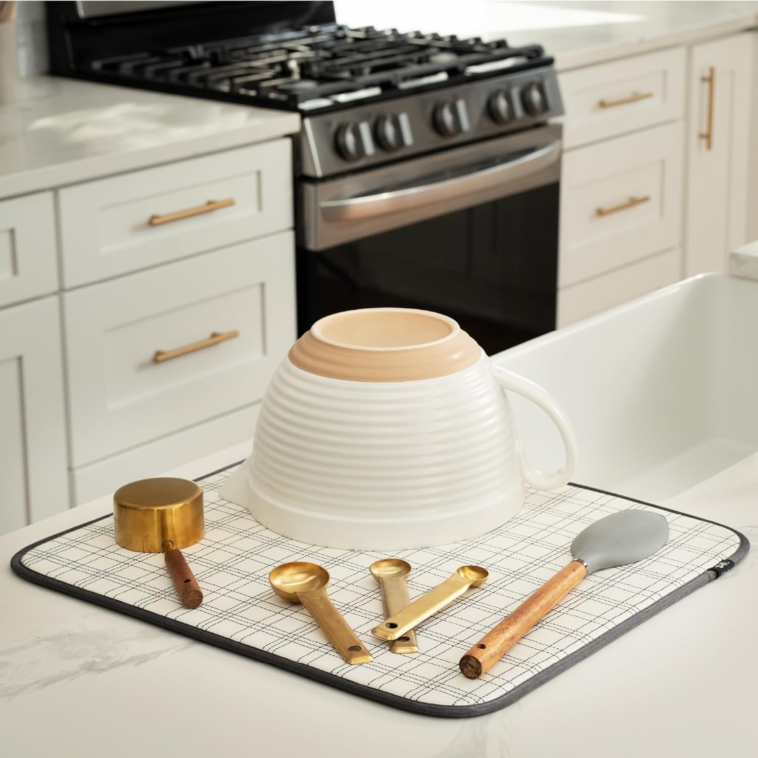 • Dish drying mats for kitchen counter are reusable, machine washable, and easy to store for kitchen organization; durable construction will not chip or break like a stone dish drying mat for kitchen