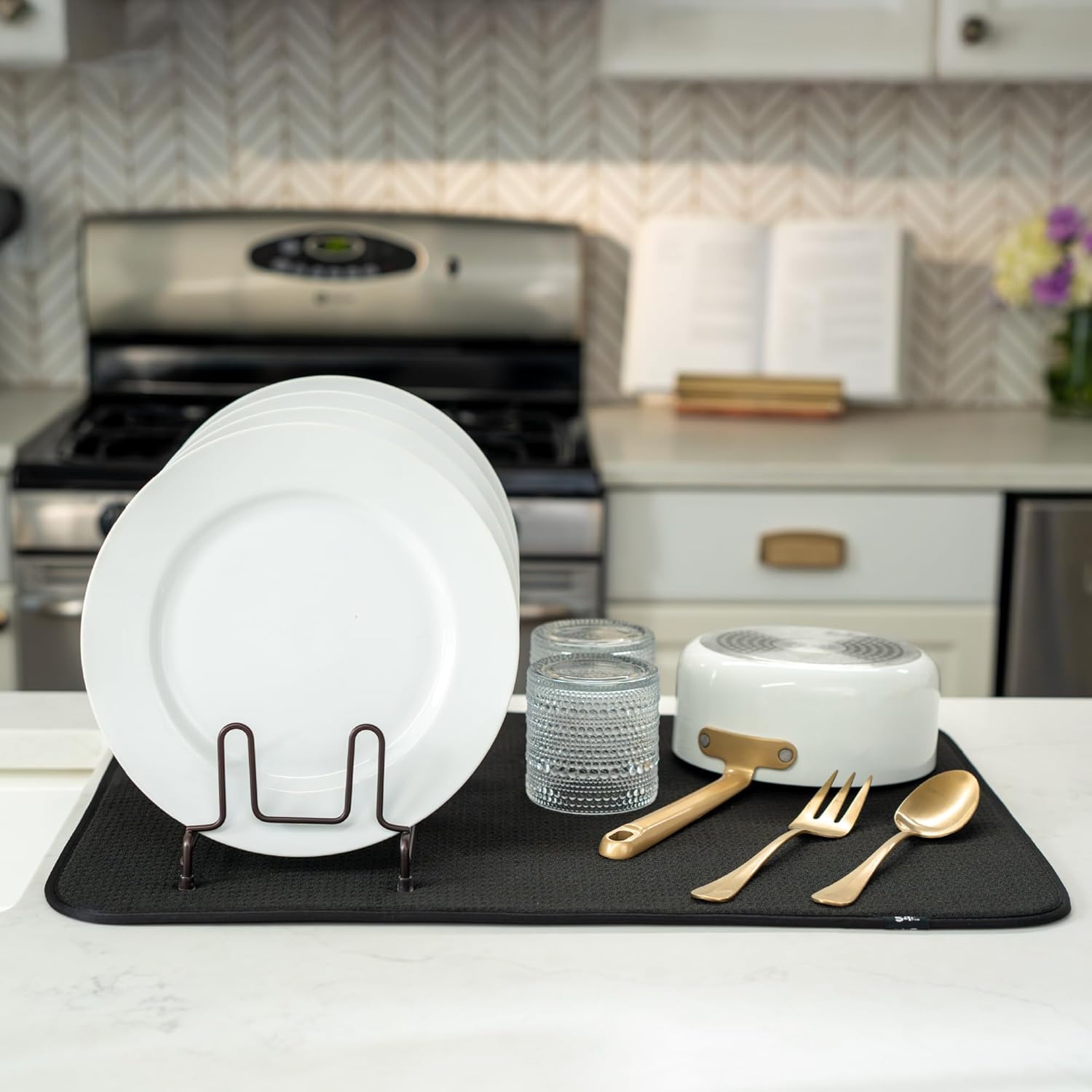 • Dish drying mats for kitchen counter are reusable, machine washable, and easy to store for kitchen organization; durable construction will not chip or break like a stone dish drying mat for kitchen