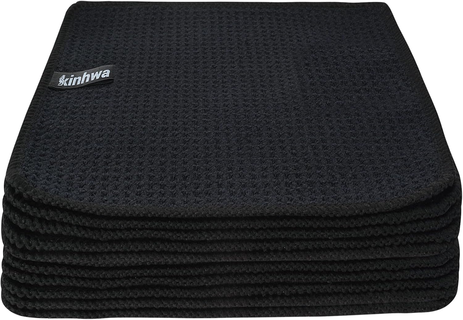 KinHwa Dish Cloths for Washing Dishes Kitchen Towels Microfiber Dish Towels for Kitchen Dish Towels Absorbent 8inch x 8inch 6 Pack (Black, 8in x 8in 10 PC)
