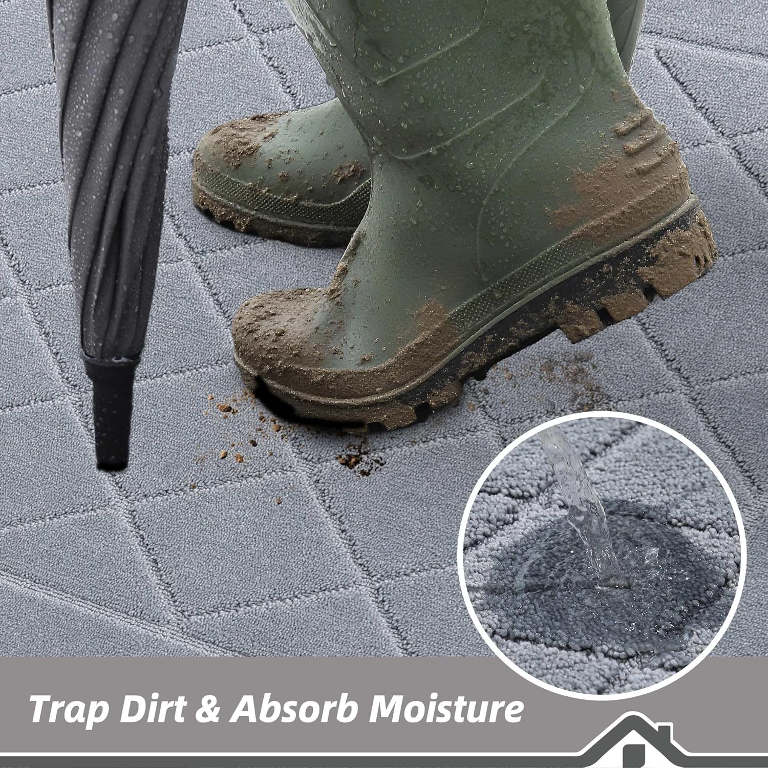 BEQHAUSE Dirt Trapper Door Mat 32" x 48", Doormat Non-Slip Entryway Rugs Washable, Dog Door Mat Stain Resistant and Absorbent Welcome Floor Mat for Front Back Door, Muddy Wet Shoes & Paws, Grey