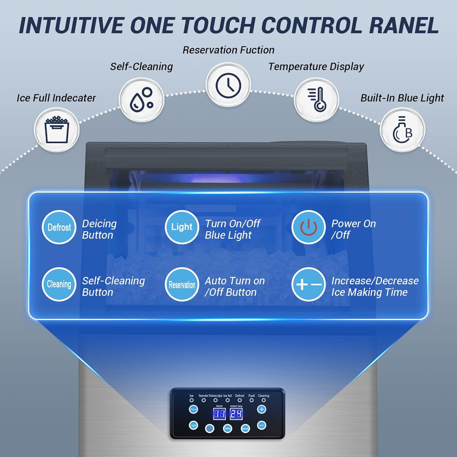 • π— π—¨π—Ÿπ—§π—œ-π—™π—¨π—‘π—–π—§π—œπ—’π—‘π—”π—Ÿ π—Ÿπ—–π—— 𝗖𝗒𝗑𝗧π—₯π—’π—Ÿ π—£π—”π—‘π—˜π—Ÿ - Our multi-functional ice cube maker is designed to provide convenience and ease of use. With a user-friendly LCD control panel, all the functions of the ice maker can be accessed and operated effortlessly with just a single click. Including 24-HOUR RESERVATION FUNCTION、AUTOMATIC SELF-CLEANING FUNCTION、MALFUNCTION REMINDERS、BUILT-IN BLUE LIGHT、DE-ICING FUNCTION and so on.
