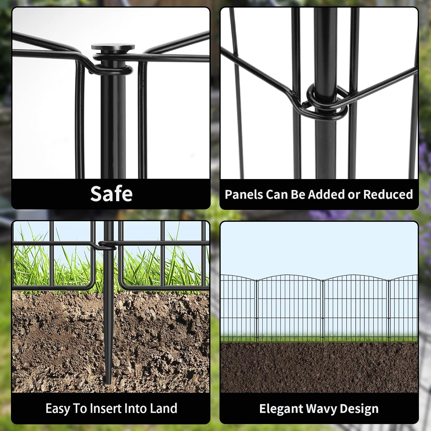 • MULTI-PURPOSE DECORATIVE FENCE:The dog fence for the yard can be used as a garden fence or animal barrier fence and can be set up around plants, trees, patio landscaping, vegetables, as a plant protection fence, garden landscape fence, flower bed fence and more. Can also be used as a pet fence such as dogs or rabbits to prevent small animals from escaping or entering and ruining your garden. Can also be used decoratively on driveways, walkways, backyard decorations and garden borders