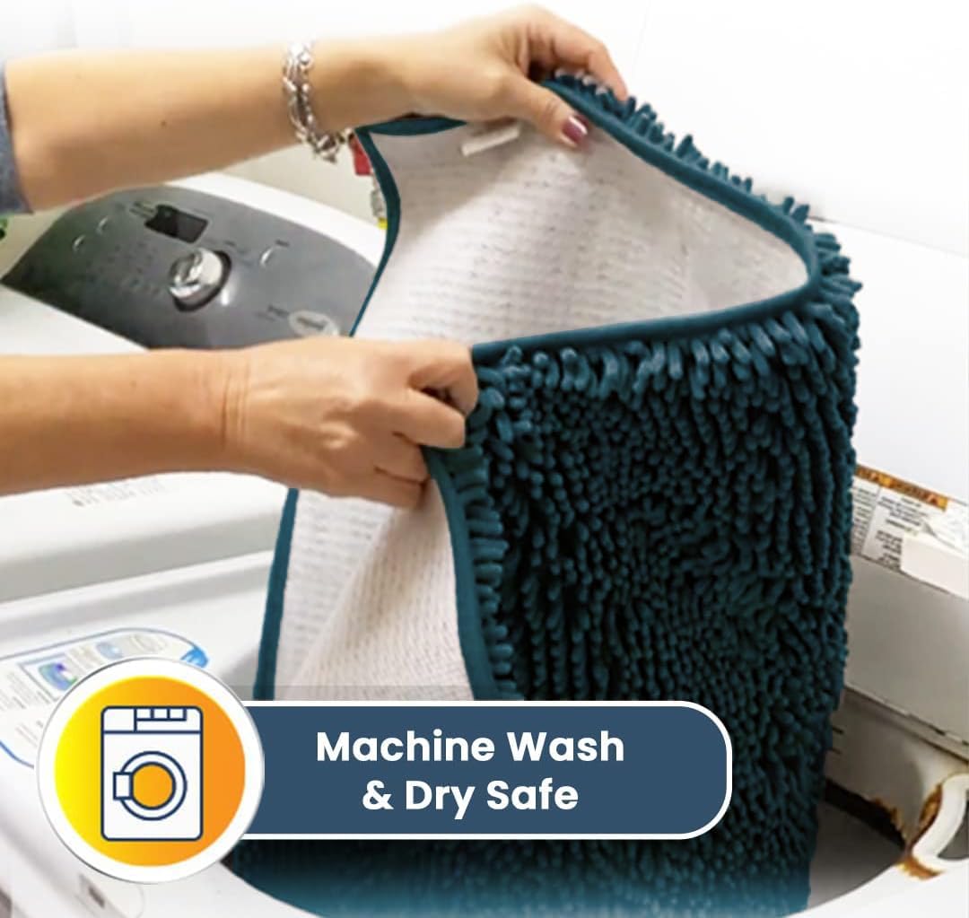 • [ ULTRA MOISTURE ABSORBENT ] designed with a thick layer of plush 1-inch chenille that soaks up to 5X its weight for maximum water absorption ideal for trapping liquid from shower floors and wet spills from pets.