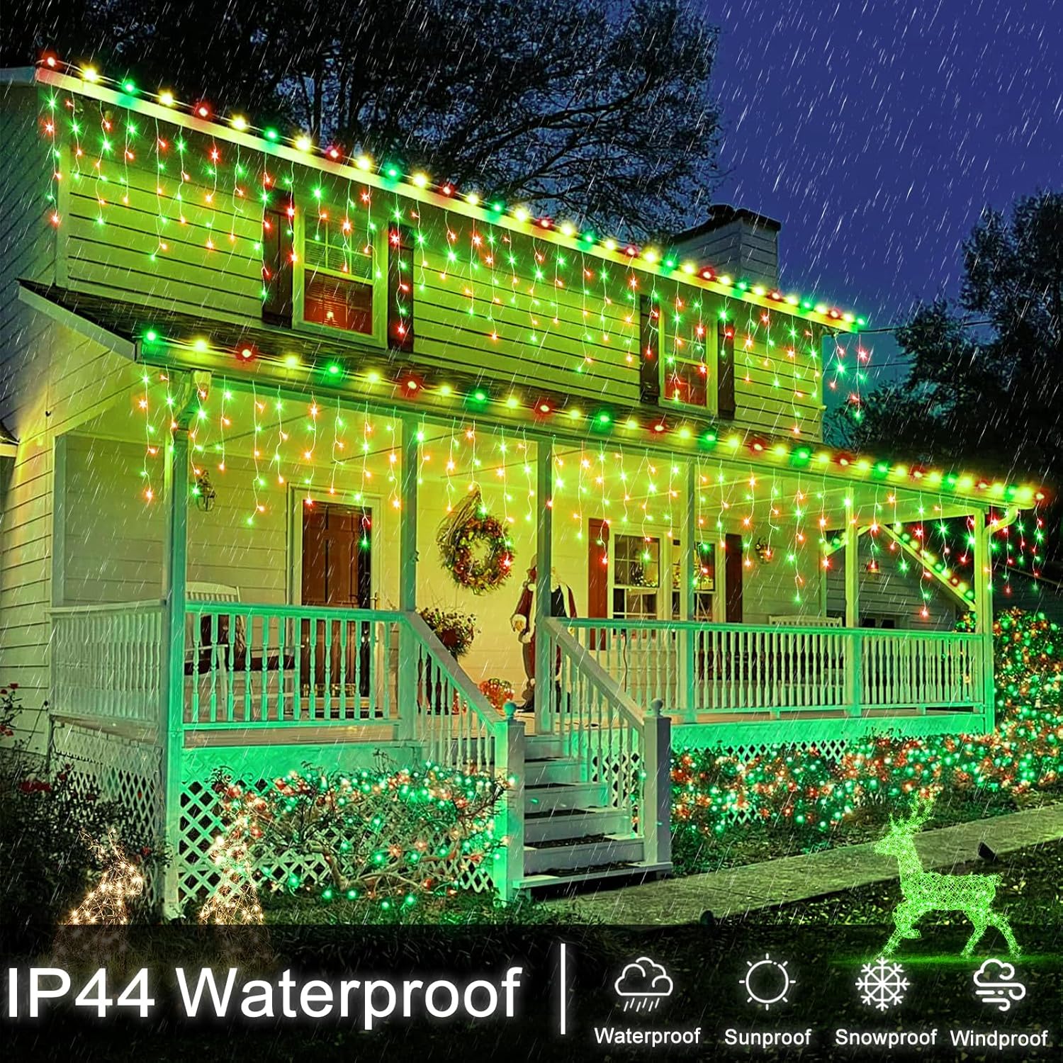 • Christmas Lights Outdoor: 400LED red green icicle lights totally length is 43ft, including 33ft icicle lights and 10ft extension cord. The outdoor Christmas lights can be connected up to 3 sets to decorate larger areas, suitable for use throughout the year - birthdays, anniversaries, Christmas decoration. The connectable icicle lights can be controlled by one button on the power adapter. Hang these Halloween string lights outdoor indoor to create warm and romantic atmosphere for you.
