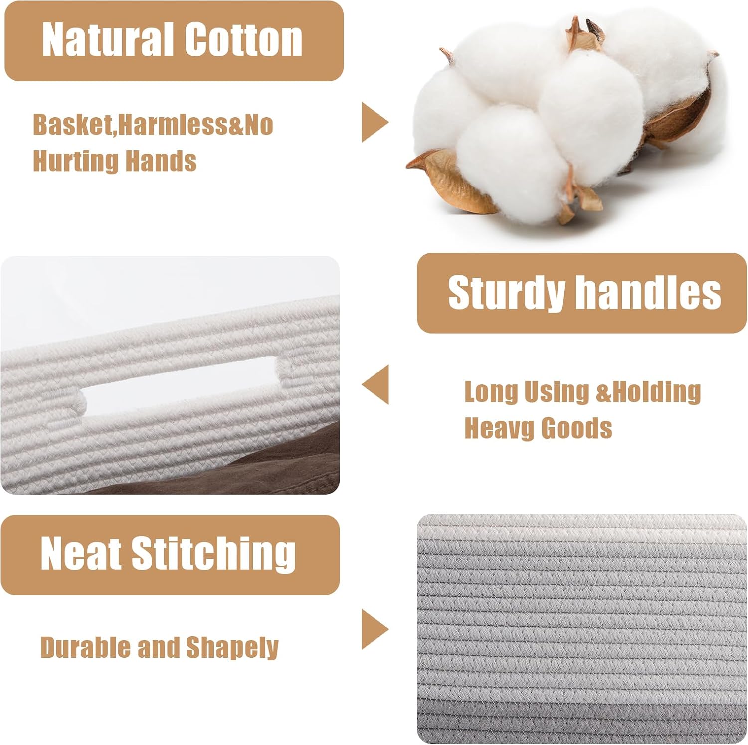 • Sturdy & Long-lasting: Soft storage baskets are made of high quality natural cotton rope, which are exceptionally durable & sturdy and firm enough in regular use. They can keep their shape even with heavy loads