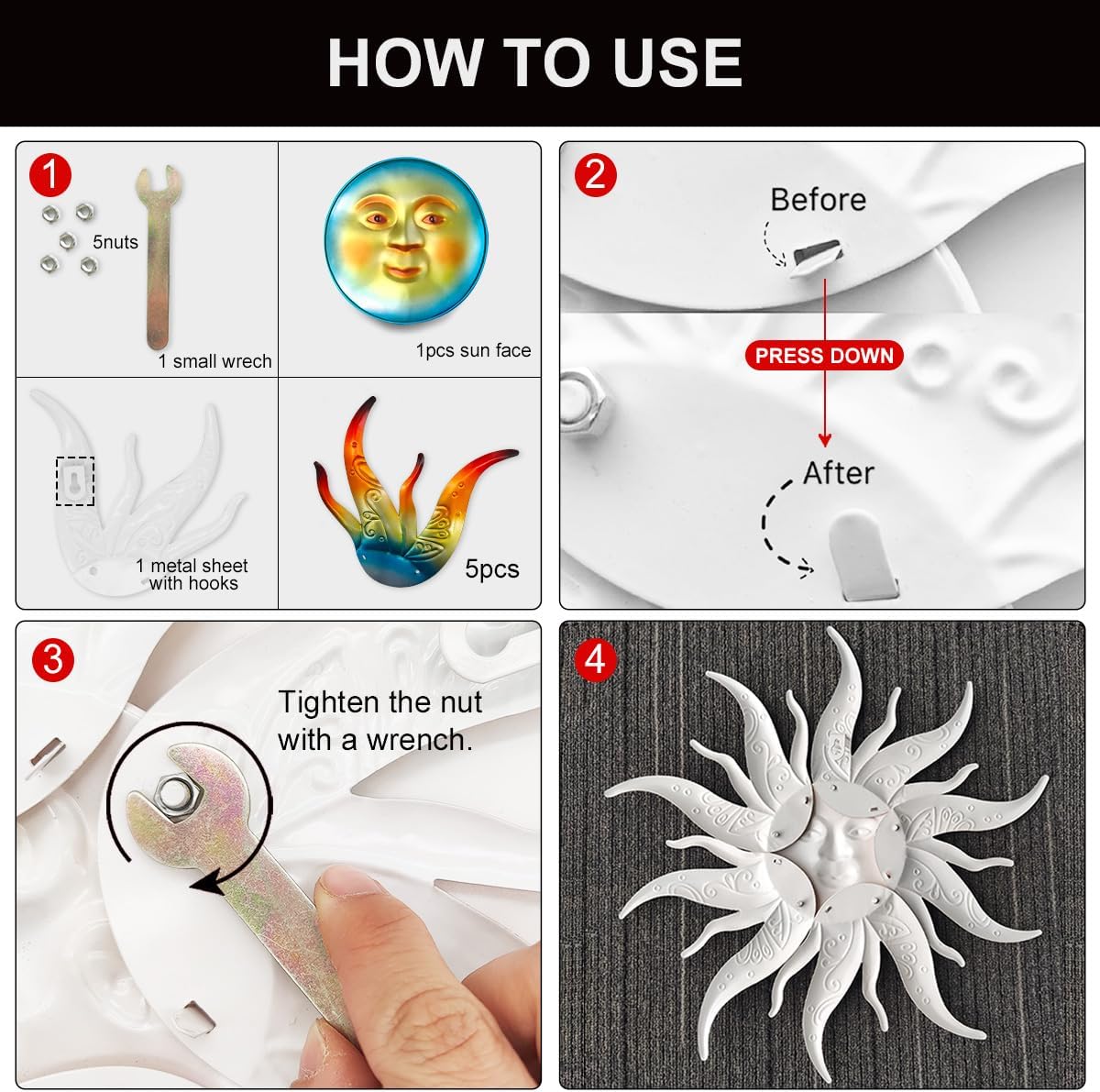 • 【Easy to Install】The metal sun wall decoration comes with a sturdy metal hook, making it easy to install on the wall or ceiling. You can easily install it in a few minutes according to the installation instructions we provide.