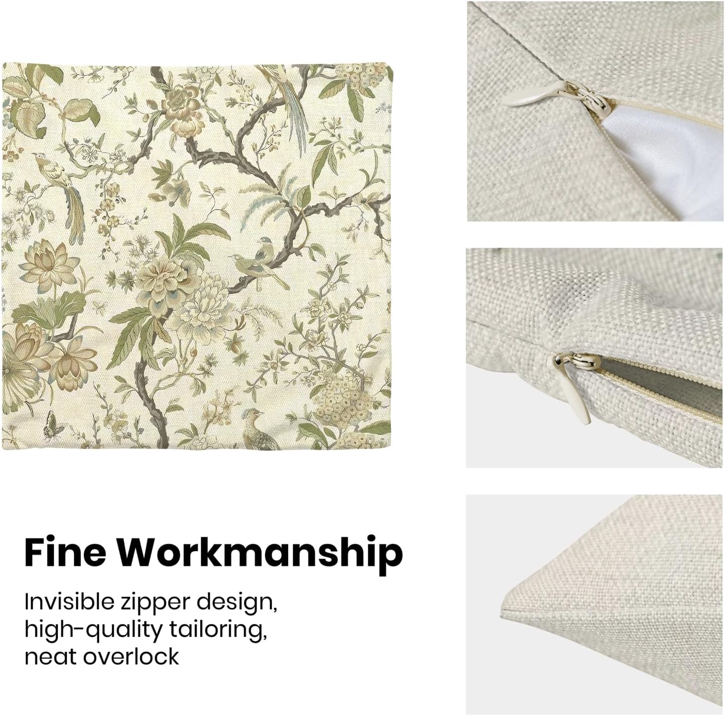 • 【Spring Pillow Covers】 Our Chinoiserie floral throw pillow covers 20x20 inch are made of excellent breathable polyester cotton fabric. The sage green floral decorative pillow covers is durable, soft and skin-friendly. The plant outdoor pillow covers adopt exquisite edging technology and four sides of our floral pillow covers are sewn firmly, which is not easy to open the line.