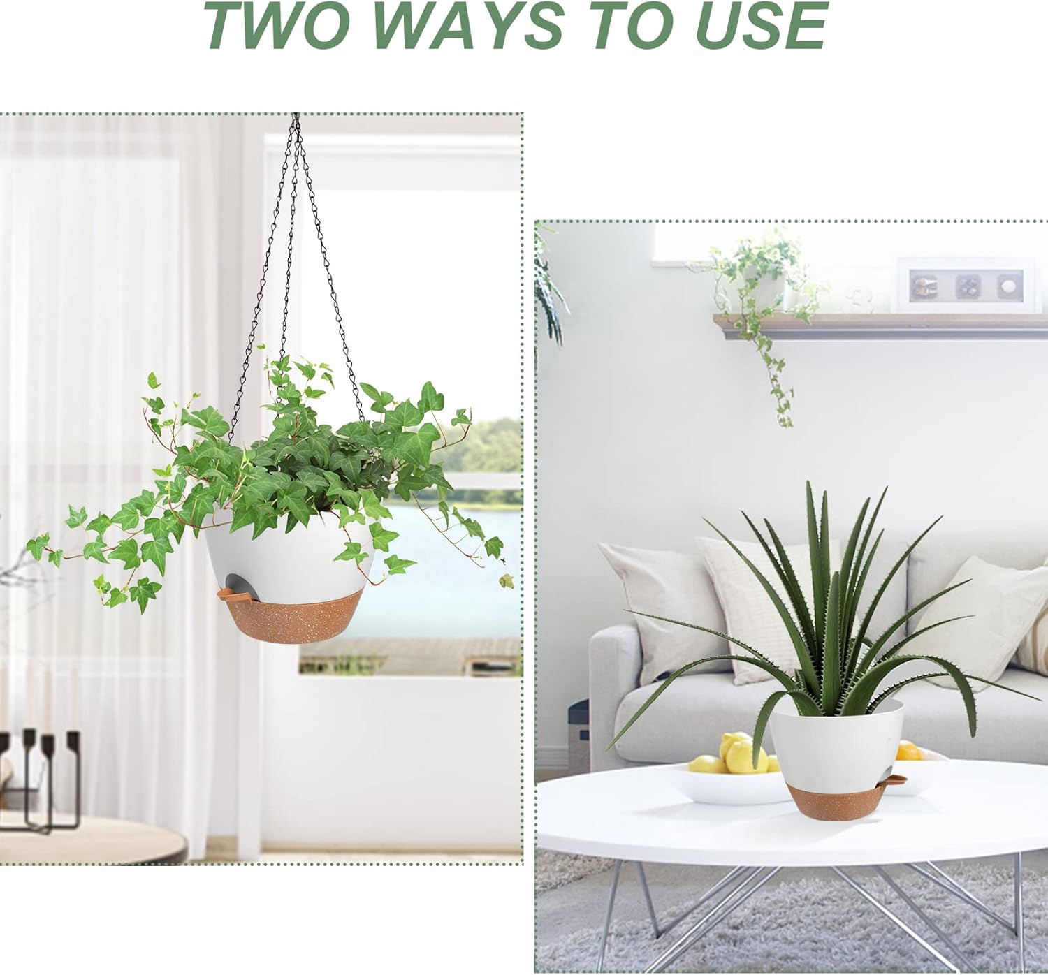 Hanging Planters for Indoor Outdoor Plants, 2 Pack Self Watering Hanging Pot with Drainage Holes & Removable Tray (White, 6'')