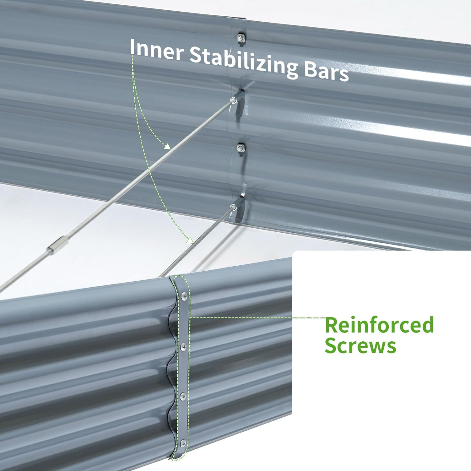 • Brighten your backyard: Environmentally friendly paint used meanwhile will not pollute the soil and provides a favourable growth environment for plants with our planter garden box. The steel support bars help the metal garden bed keep their shape, preventing warping and soil leakage over time.