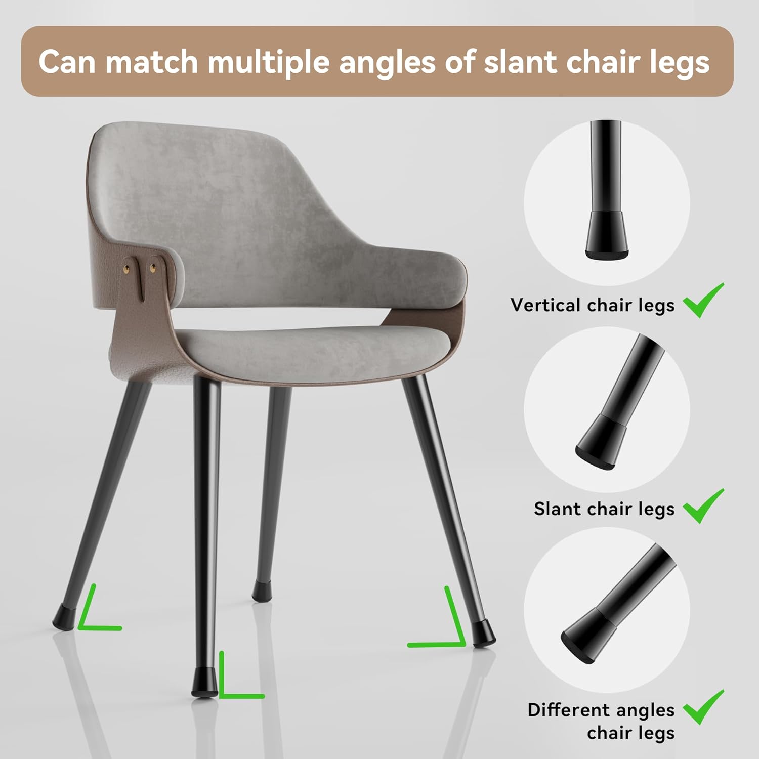 • ✅【Applicable Size Range】The chair leg covers not only come with NEW DESIGN which the bottom is 360° felt wrapped, but also works much better with all types of furniture legs, particularly the chair legs non-straight angled with the floor or metal legs;★Please CHECK your SIZE carefully before purchase; Our chair leg cap is suitable for square and round furniture feet and other shapes, such as bar stools, restaurant chairs, storage cabinet, kitchen chairs, metal bistro chairs, etc.