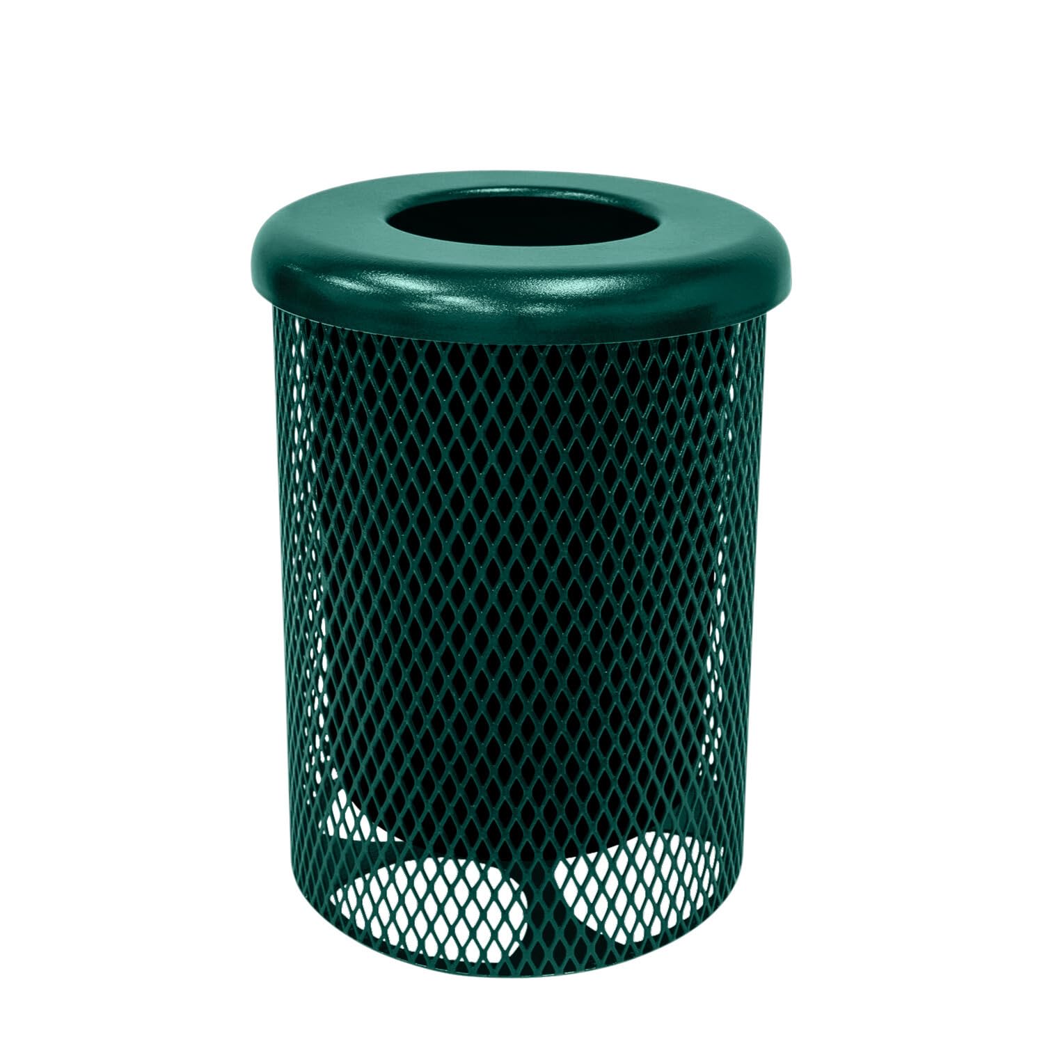 COATEDOUTDOORFURNITURE RFT-TXTGRN Heavy Duty Round Trash Receptacle with Flat Top, Liner Included, 32 Gallon, Textured Green, Made in America