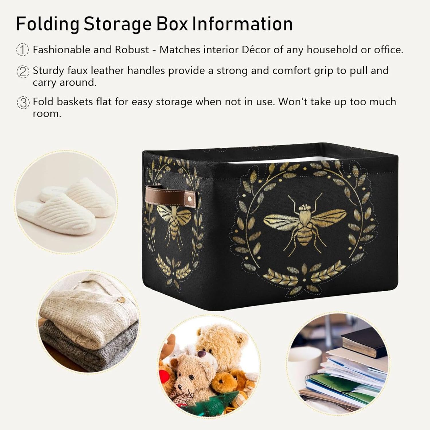 susiyo Storage Baskets for Shelves Organizer Baskets with Metal Frame Closet Storage Bins Fabric Bins Cubes with PU Handles for Organizing Shelf Nursery Toys 2 PACK,Gold Bee Floral