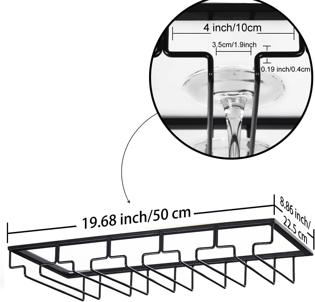 • 🍷EASY TO INSTALL: Comes with the mounting hardware, no advance drilling advance required, just a few minutes to complete the installation. Organize your stemware collection, keep your wine glasses under the cabinet.