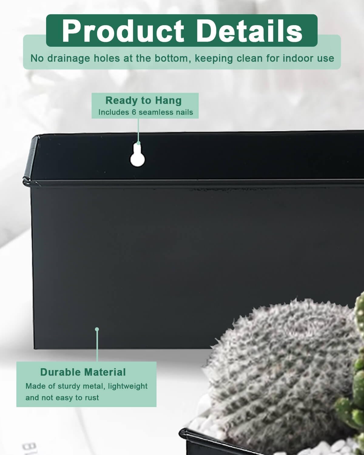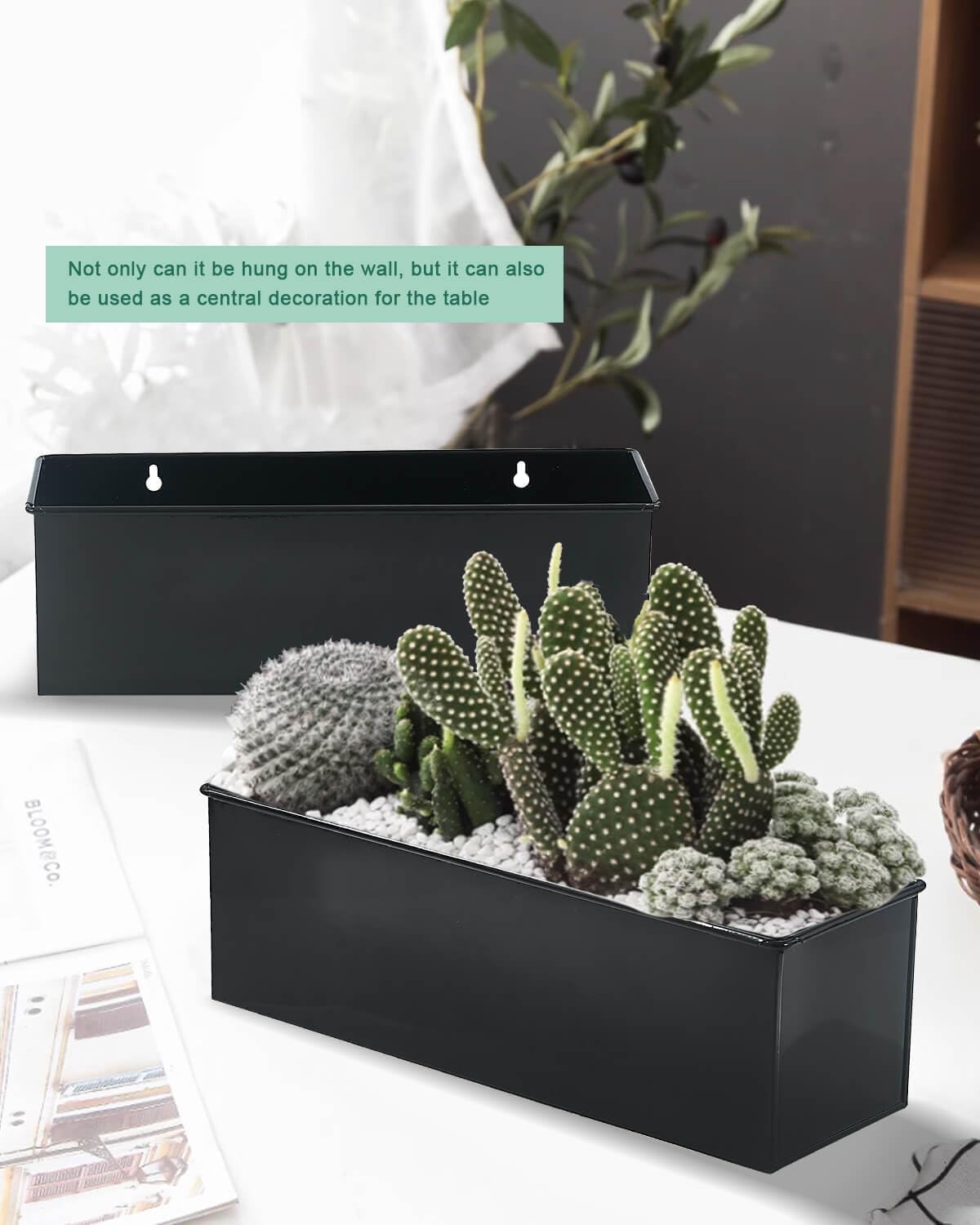 • 【Set of 3 Wall Planters – 12" Size】Includes 3 black rectangular metal wall planters, each measuring 12" L × 4" W × 4" H. Ideal for herbs, flowers, succulents or small vegetables on walls, windowsills, balconies, or fences.