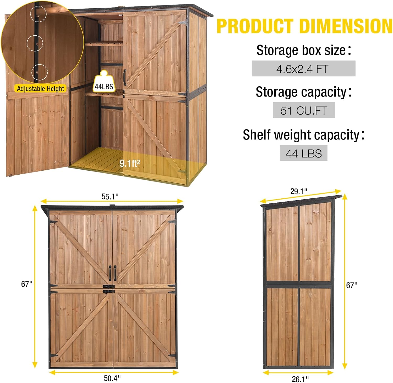 • Ample Storage: 4.6 x 2.42ft space perfect for safely storing gardening essentials, outdoor equipment, and more. Keep your space organized and clutter free with this practical storage solution