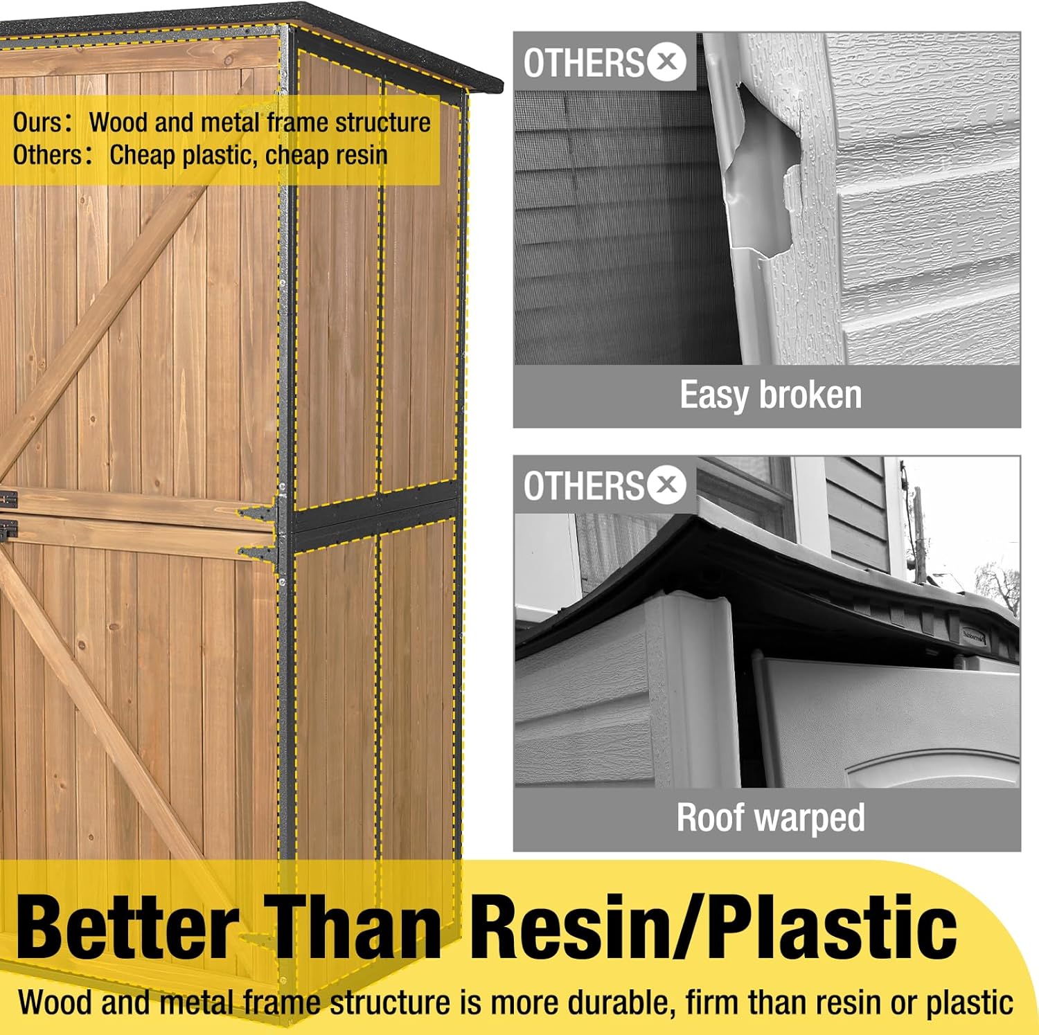 • Stable Construction: Reinforced with a robust metal frame, our outdoor garden shed offers unparalleled stability, ensuring it withstands various weather conditions for long lasting durability