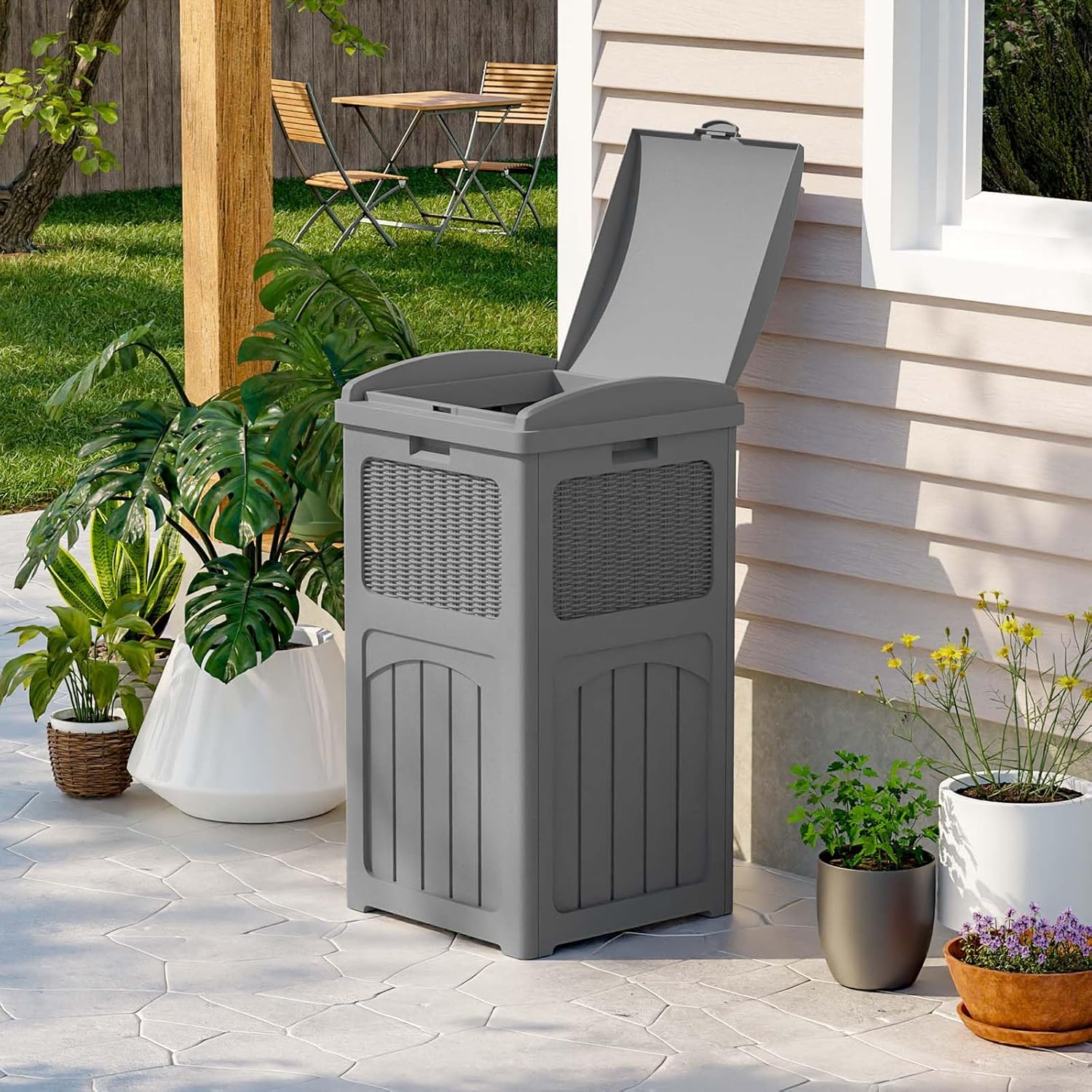 • Stylish appearance: With wicker design on the outside, it can be placed on any deck or patio, and can also be matched with other furniture.The wide range of colour variants gives you more options for integrating the bin into your home style.