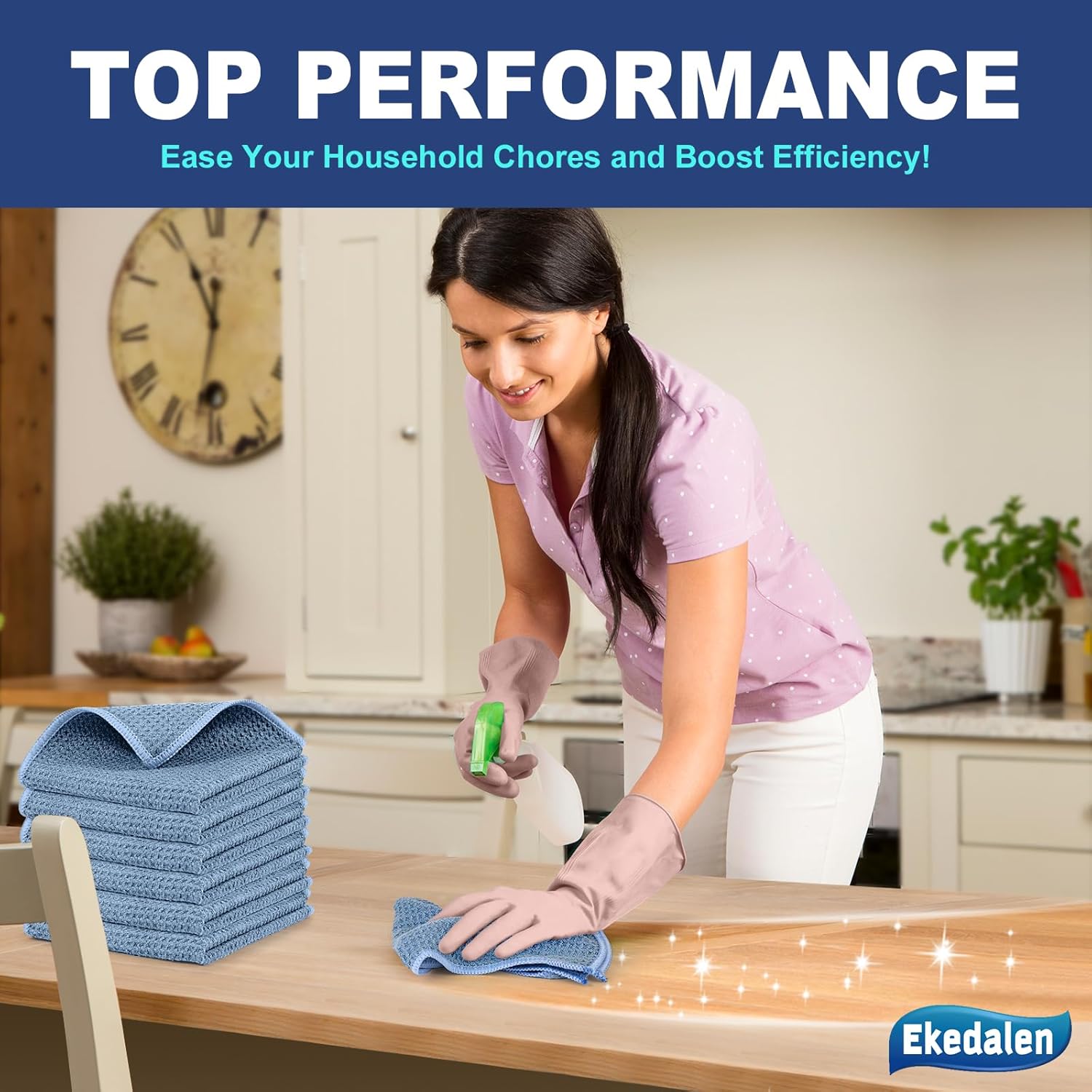 Microfiber Cleaning Cloth Waffle Weave for Dusting Absorbent Towel Quick Drying Dust Rags Household Kitchen, Lint Free Streak Free, 6 Pack,12 x 12 Inches, Blue