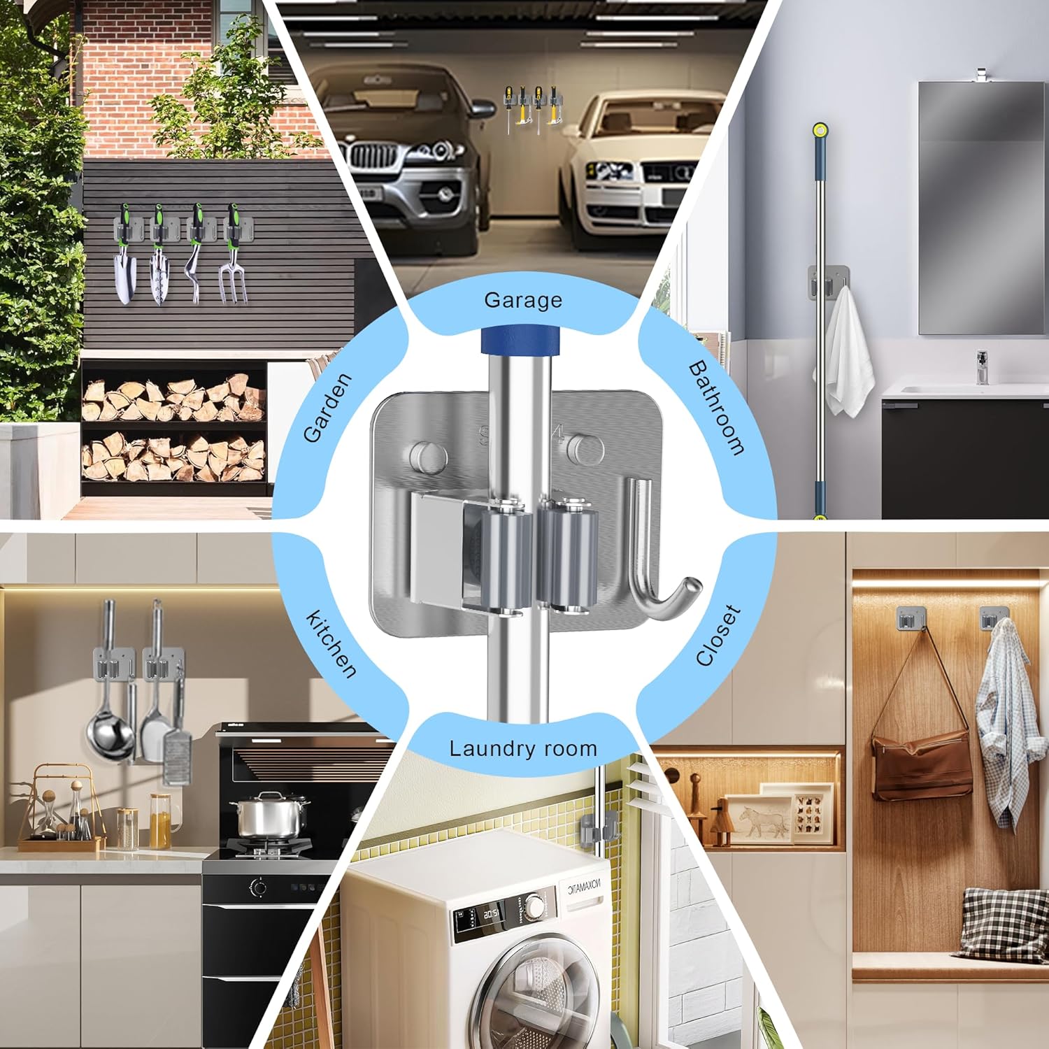 • Clever Hook Addition: Maximize your storage with the thoughtful extra hook on each mop hanger wall mount. Hang small items with ease and keep your cleaning tools, accessories, and gadgets neatly in place, so you're prepared for any clean-up