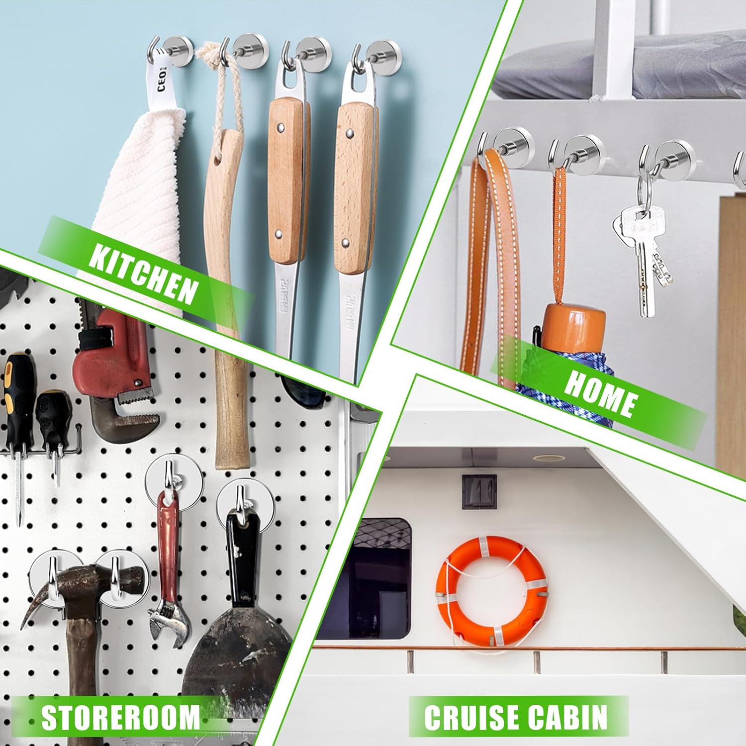 • ✔ 【VERSATILE USE】- Strong magnetic kitchen hooks are widely used, neodymium magnetic hook for fridge is endowed with strong ability to fix various items in any place with iron or steel. Magnets with hook is a magnetic key holder for wall. Our cruise ship magnetic hooks provide storage solutions, including bathroom, kitchen, tool room. Small metal hooks are also very suitable for grills, storage cabinets.