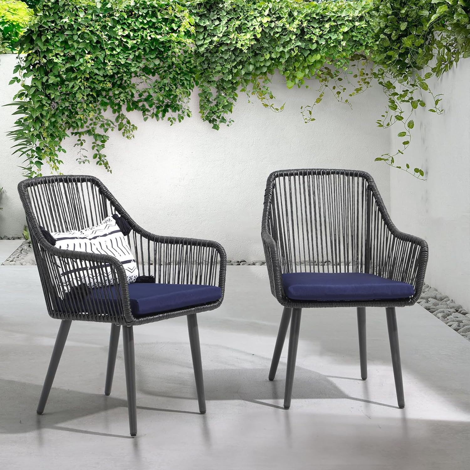 • ☕[Supremely Comfort with Bonus Covers]: The subtle curved armrest and large back of our outdoor chairs are designed to hug for total comfort. Includes 2 blue cushions + 2 bonus beige cushion covers – easily swap to match any outdoor decor! Removable high-resilience padding stays plush while being breeze to clean. (Upgrade available from July 25th, 2025)