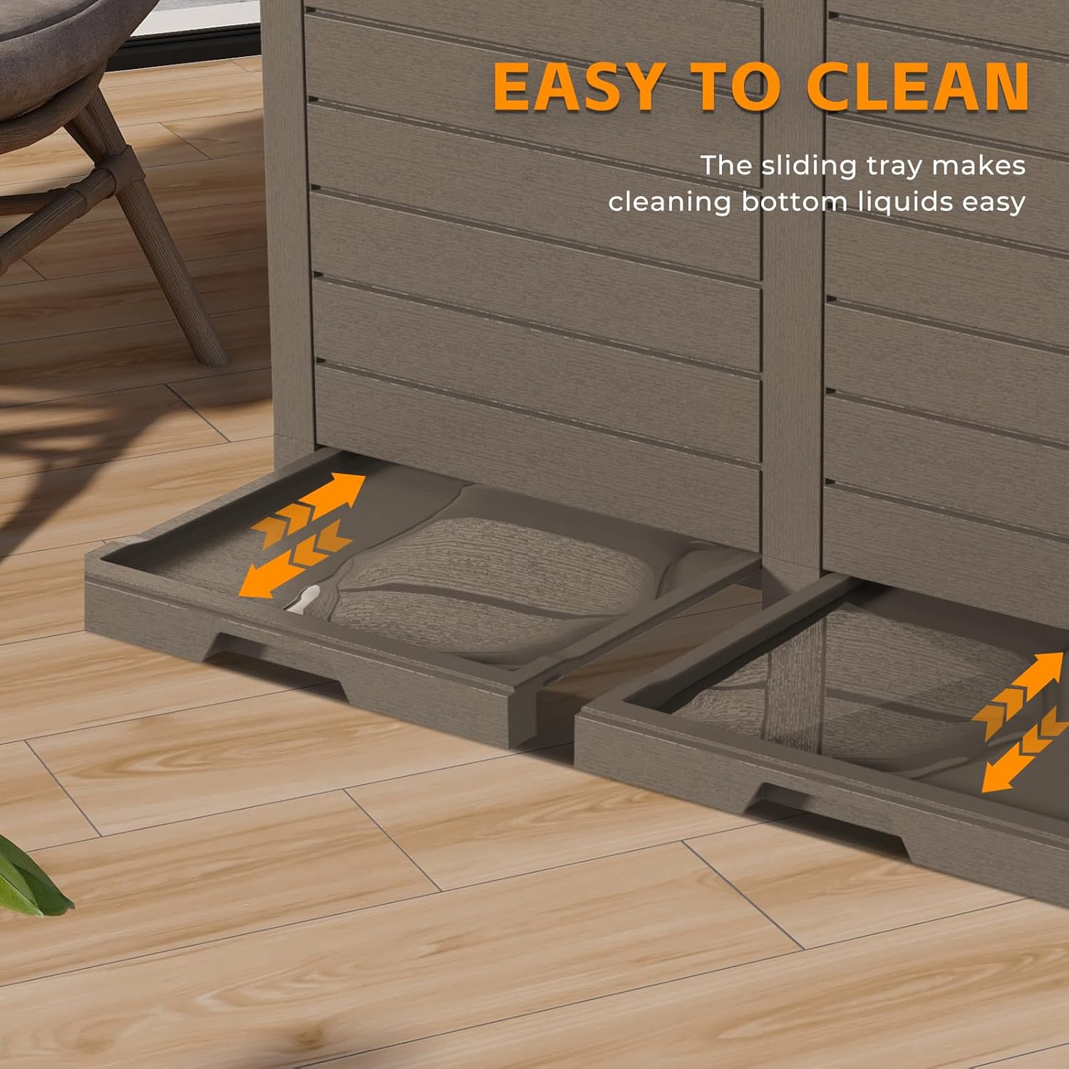 • Durable and Waterproof Material: Made from durable, recyclable resin, this outdoor trashcan is waterproof and fade-resistant. The sturdy panels are resistant to bending, warping, or breaking, providing excellent weather resistance to withstand various weather conditions.