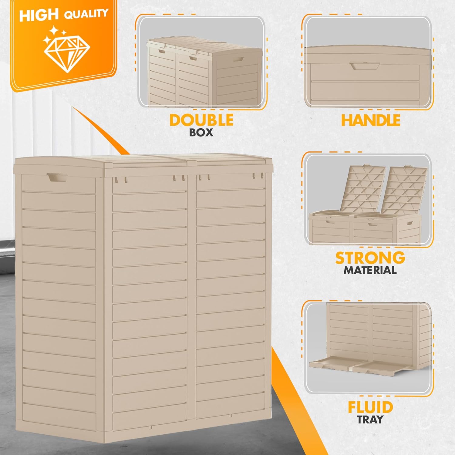 62 Gallon Outdoor Trash Can, Waterproof Resin Trash Can with Layered Lid and Drip Tray, Perfect for Patio, Backyard (Grey)