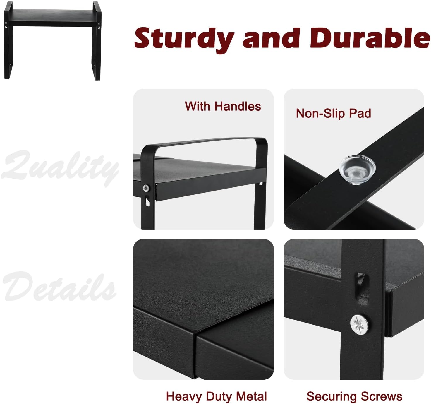 • Expandable and Adjustable: Spice rack organizer features a special expandable design, allowing it to easily adapt to spaces of various sizes. Whether it's a narrow cabinet or a spacious countertop, this kitchen shelf riser can be flexibly adjusted to fit.