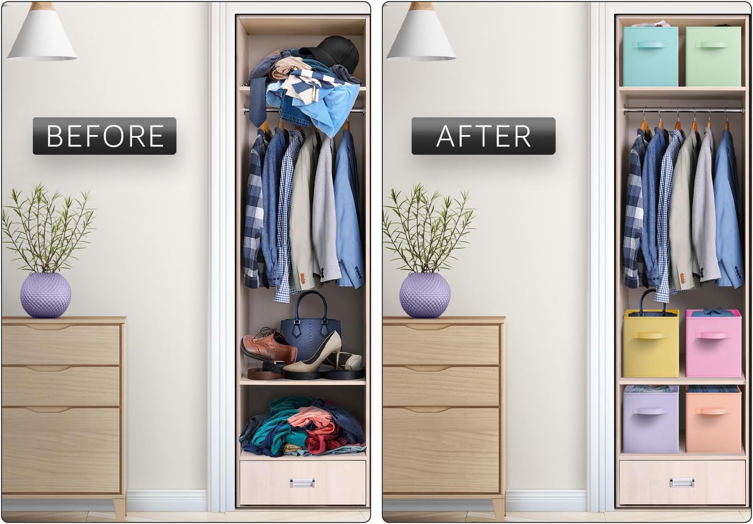 • Collapsible Storage Cubes: Save space when not in use by folding storage cube bins flat for easy organization and storage - Assemble Sorbus Storage Bins in seconds, simply pop cardboard floor into place - Features 2 sturdy handles for easy transport - Lightweight and durable