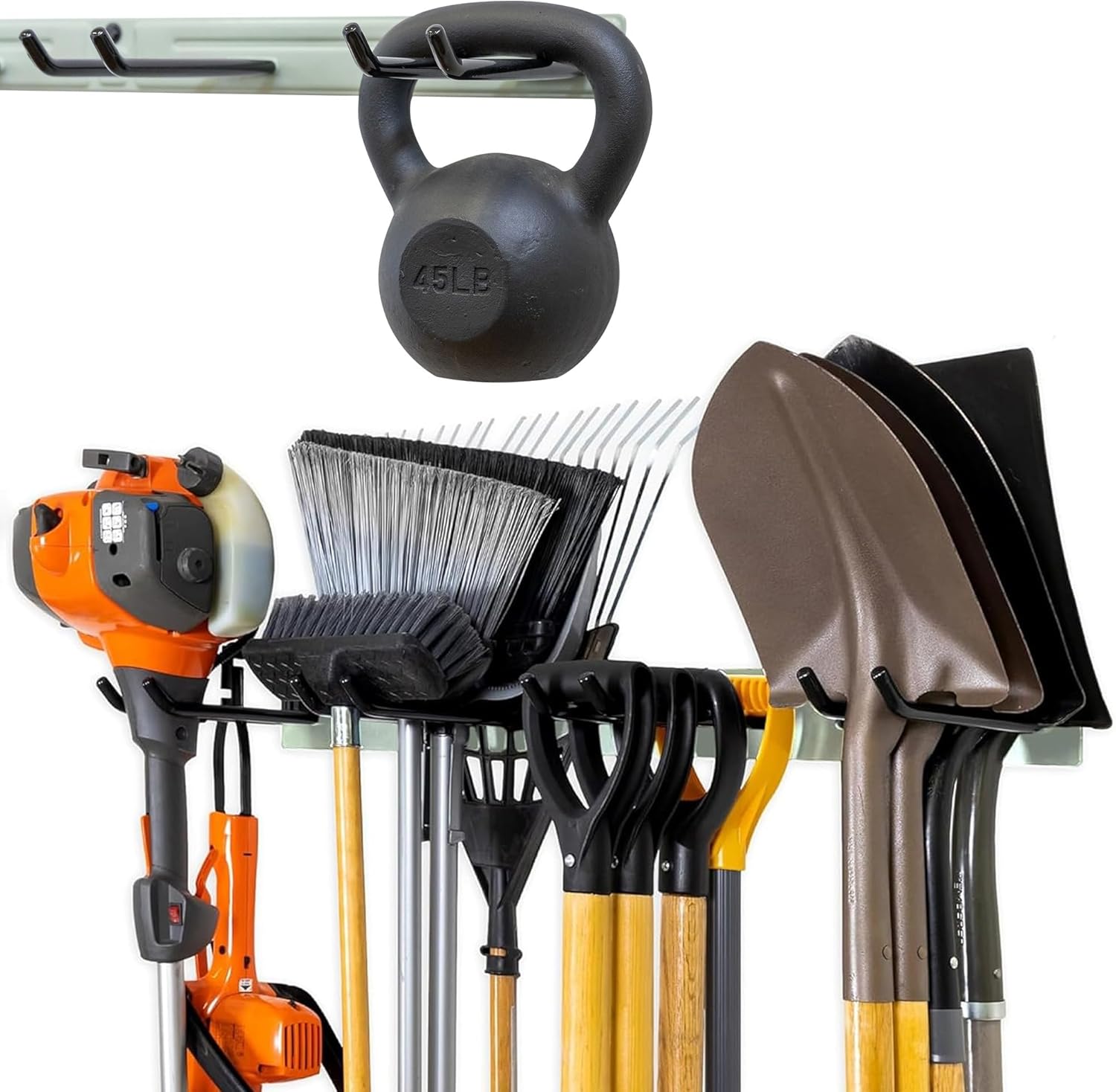 • ENGINEERED FOR PERFORMANCE – This tool organizer features an updated, reinforced backplate with structural bends to prevent sagging under weight. Built for wall-mounted storage in garages, garden sheds, or workspaces, its versatile design handles yard maintenance must-haves, power tools, and even acts as a broom holder wall mount.