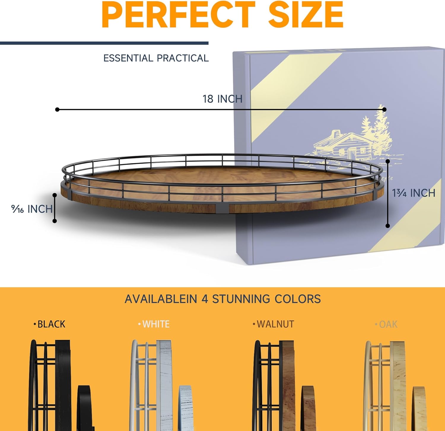 • 𝐔𝐏𝐃𝐀𝐓𝐄 πƒπ„π’πˆπ†π:The base is large enough to hold a lot and heavy objects and successfully rotate. It is made of lovely oak wood that is strong with a sturdy metal rack to secure the items on the turntable. The turntable smoothly revolves all around making the items an easy reach. There is also included anti-slip pads on the bottom of the Lazy Susan, for extra surface protection.