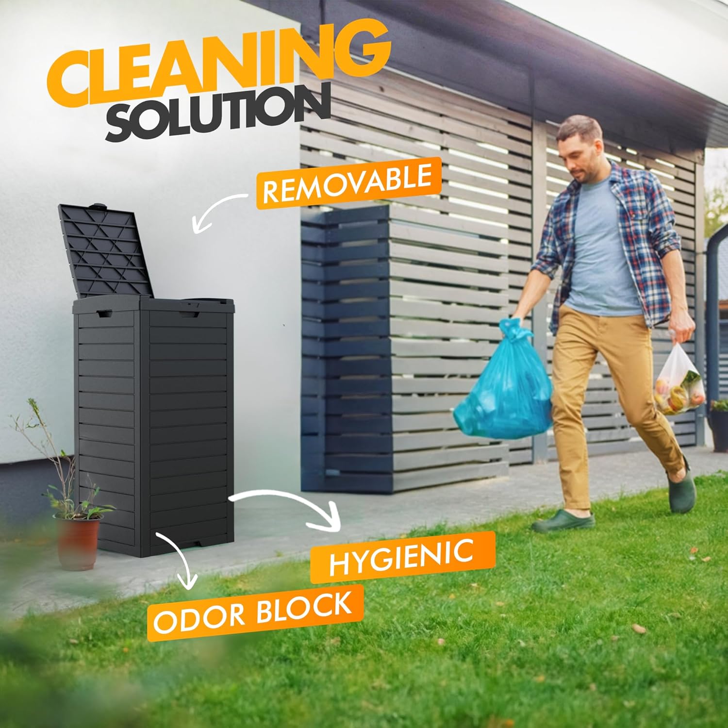 • All-Weather Resin Durability - UV-resistant, non-toxic resin withstands sun, rain, and temperature swings without cracking or fading, ensuring this outdoor trashcan functions flawlessly as both a kitchen trash can indoors and a durable outdoor solution.