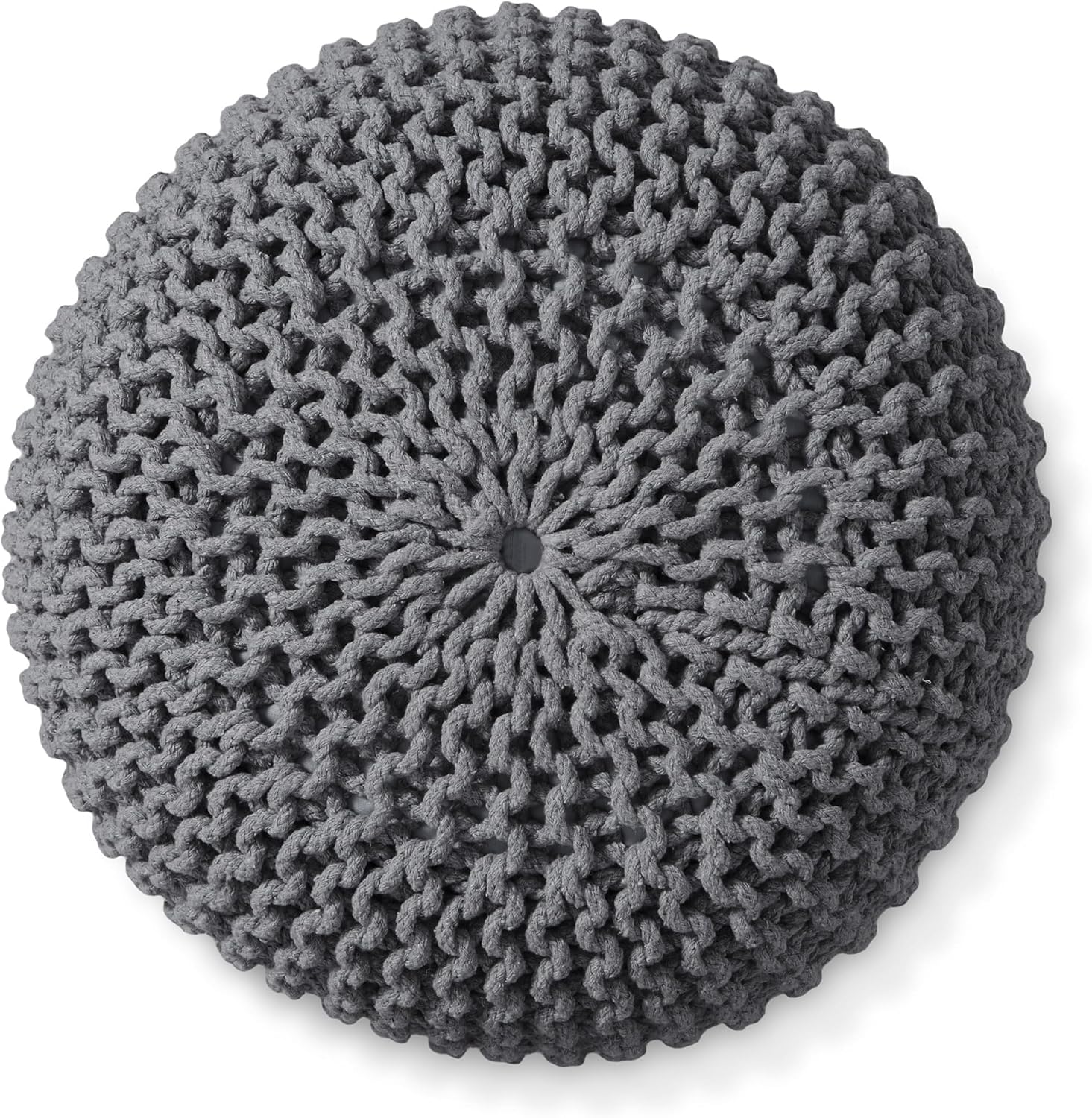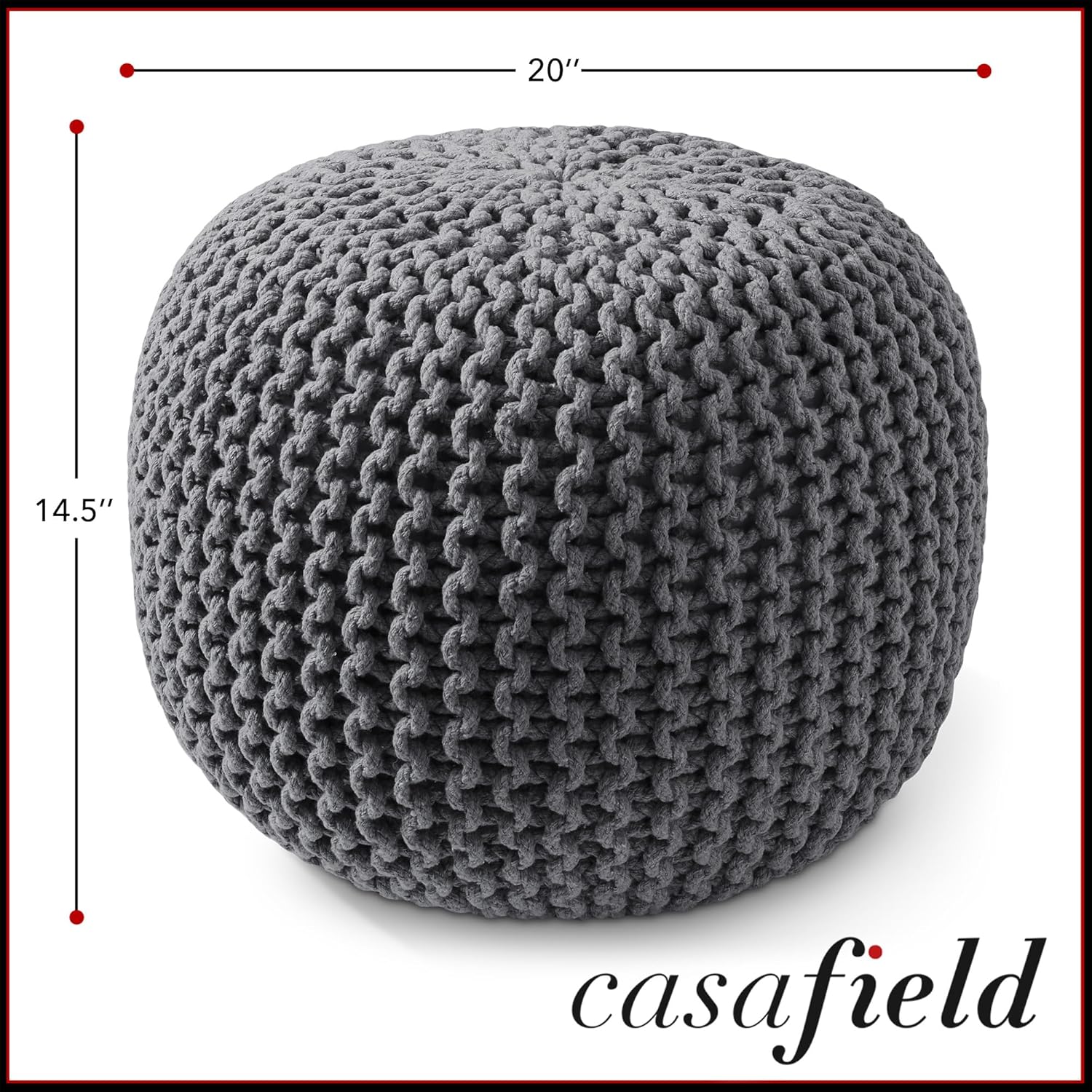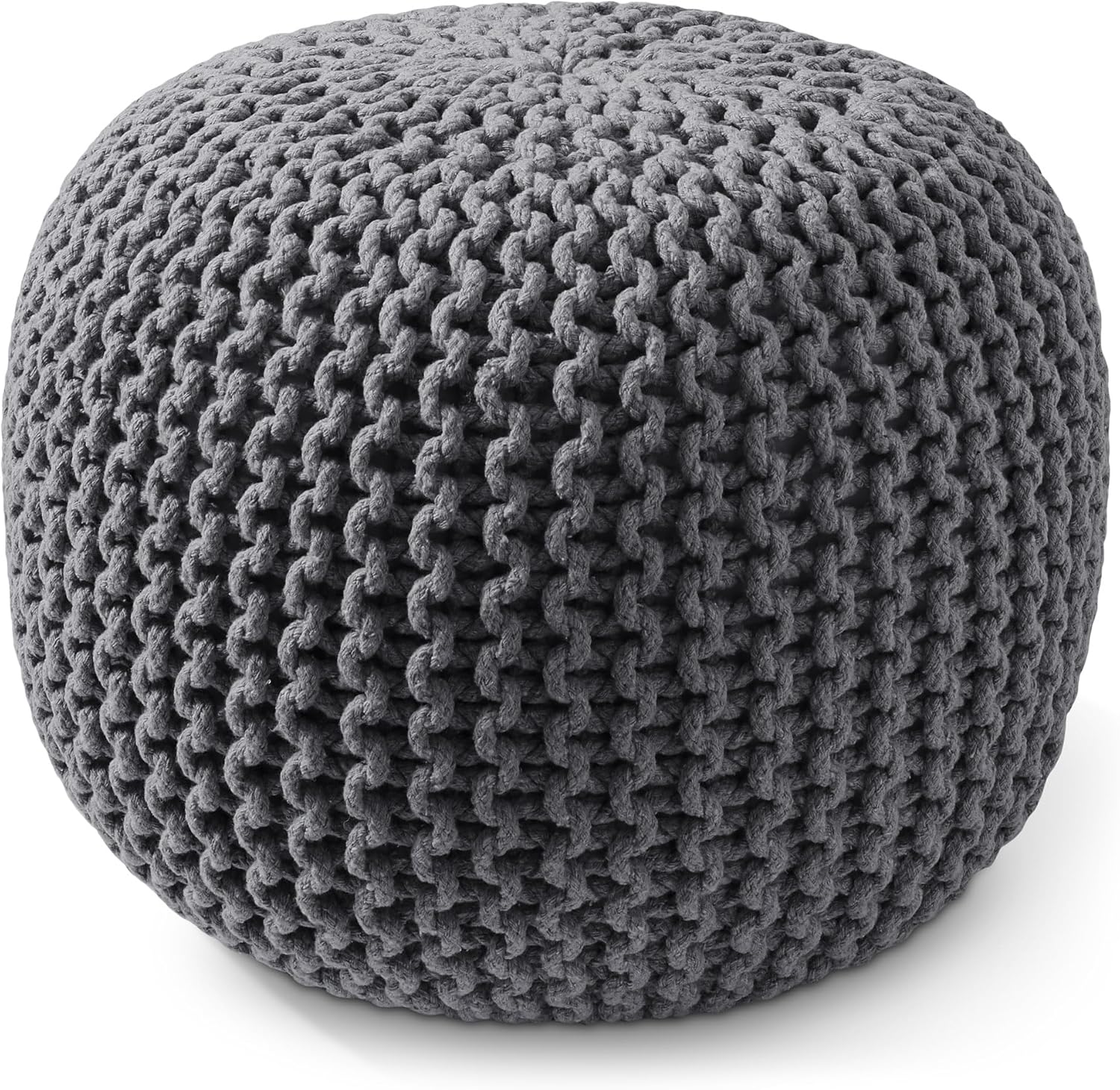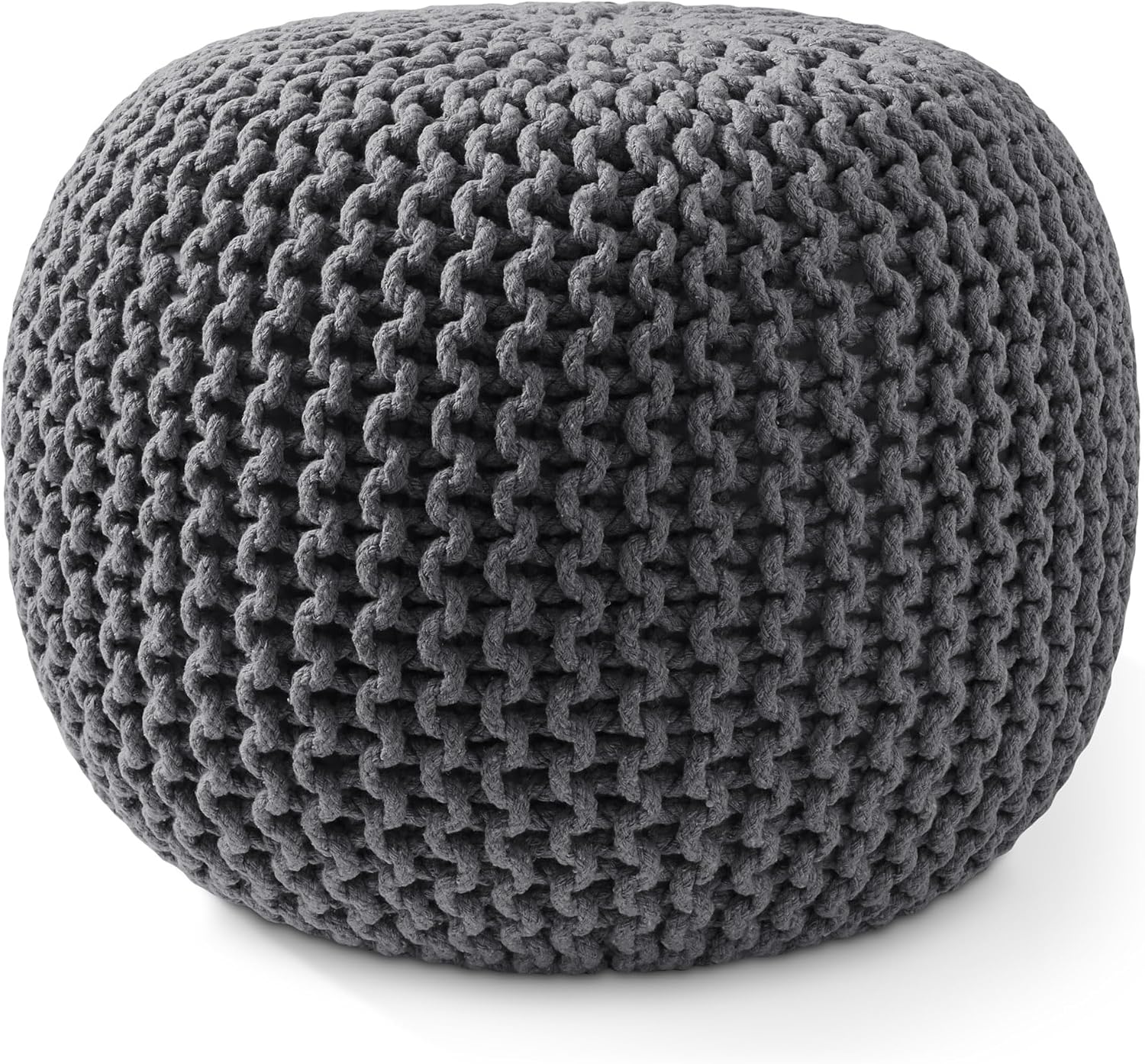 Casafield Round Pouf Ottoman, Dark Gray - 20" Diameter x 14.5" High Cotton Knit Foot Stool - Boho Floor Pouffe for Living Room, Bedroom, Home Office