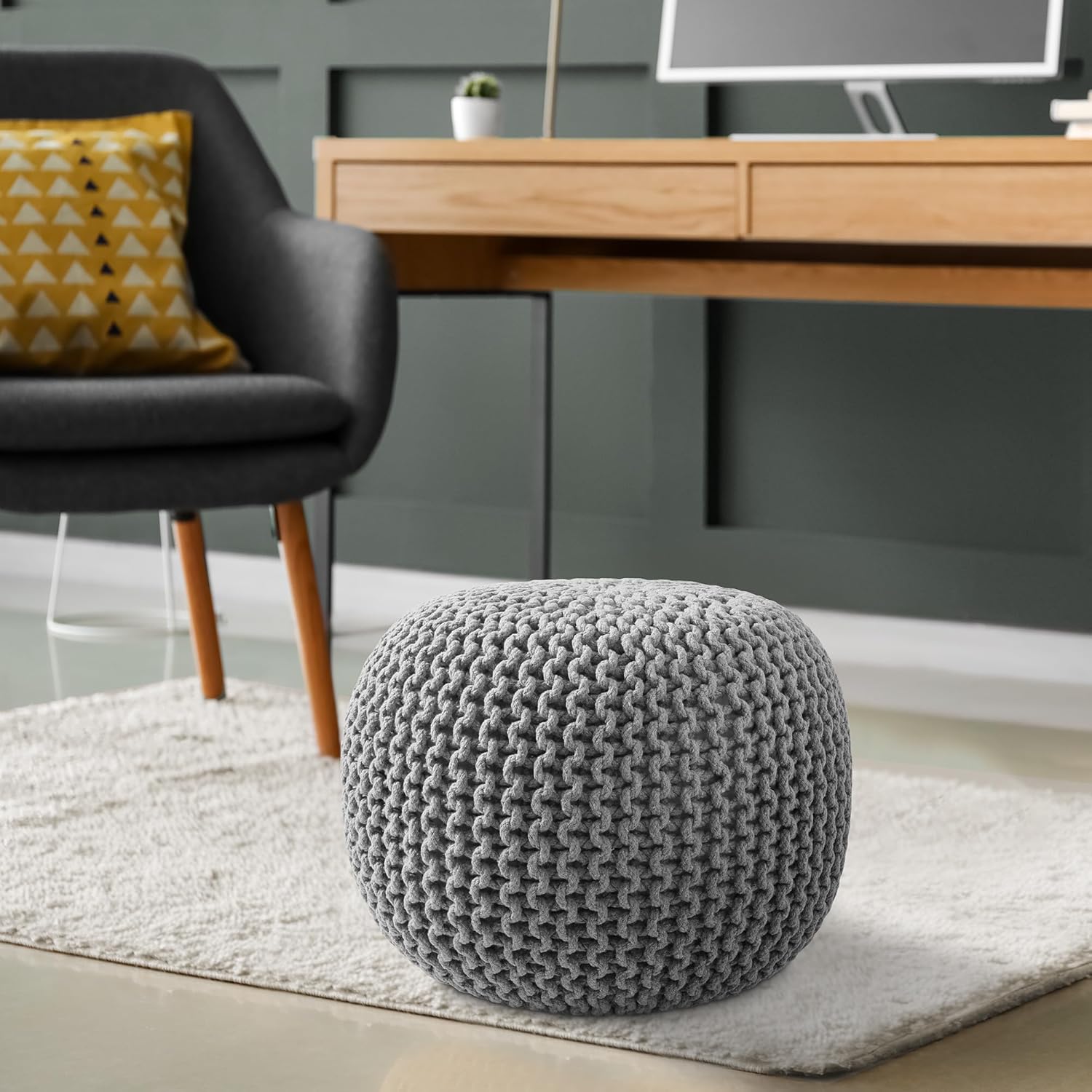 • Comfortable cotton pouf ottoman: This cushioned pouf serves multiple purposes, such as footrest, side table, or decorative accents, making it adaptable to various spaces in your home. The hand-knitted pouf ottoman cover is crafted from breathable cotton and provides a comfortable surface to rest your feet.