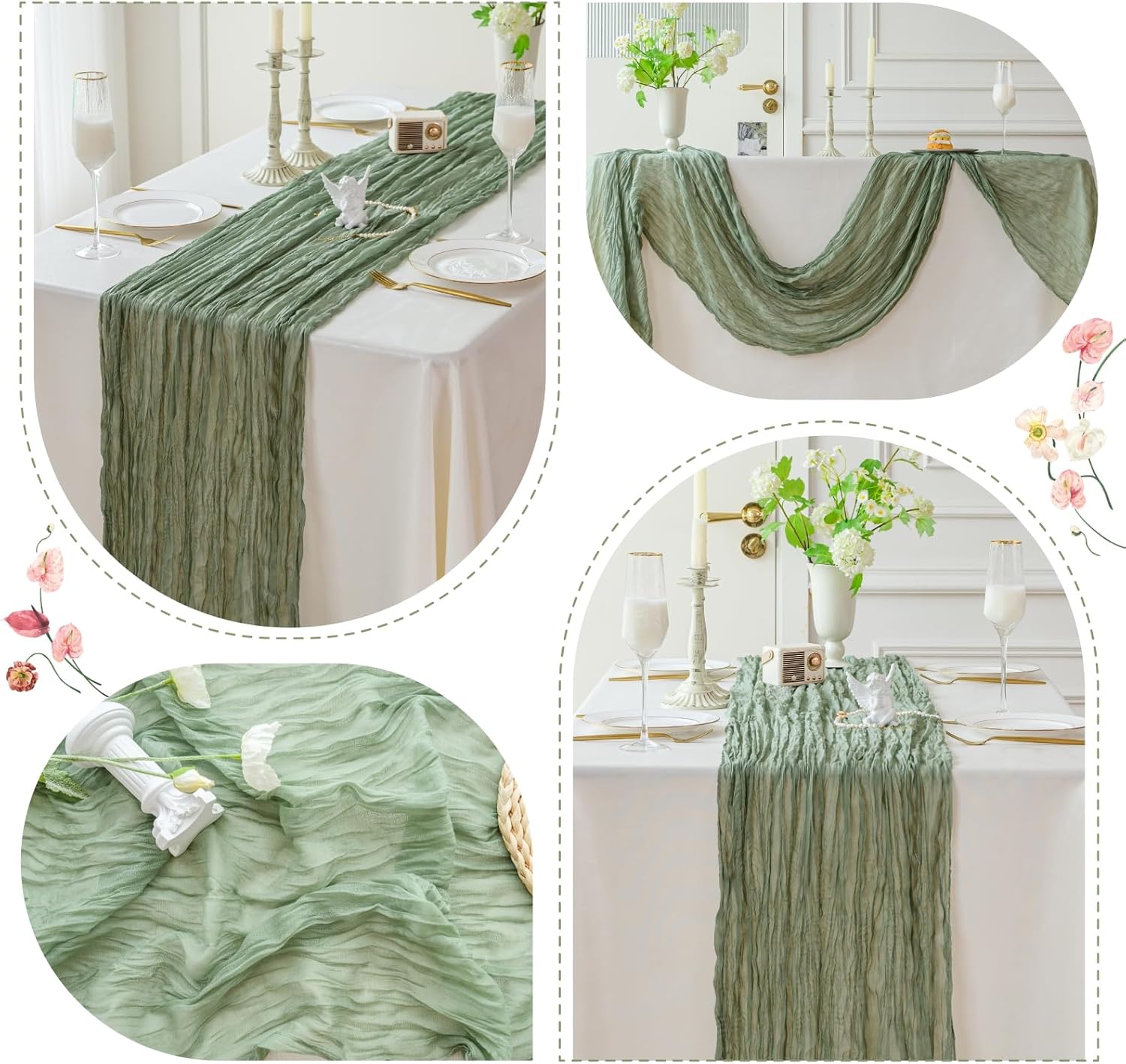 Sioloc 1 Pack Sage Green Cheesecloth Table Runner Fall Autumn Decor for Home 10ft Table Cloth for Tea Wedding Birthday Party Baby Bridal Shower Halloween Thanksgiving