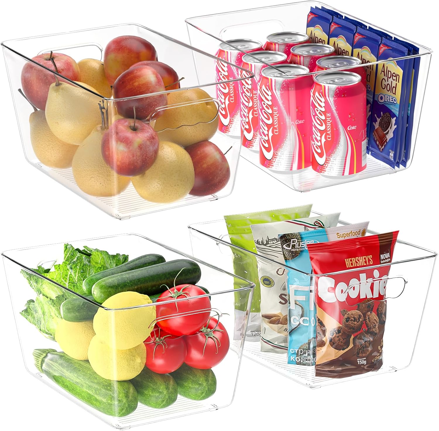 BALEINE Clear Plastic Storage Bins, Pantry Organization, BPA Free Stackable Refrigerator Organizers and Storage with Handles for Kitchen Fridge Cabinet Bathroom (4PK, 11x7.5x6)