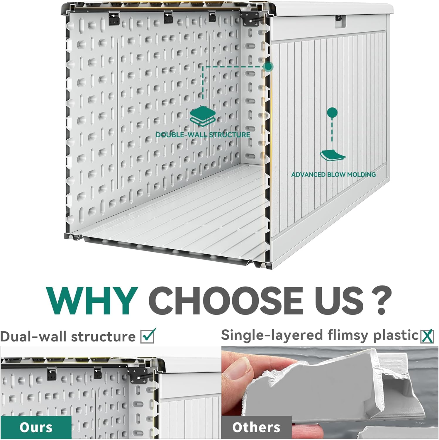 • MULTIPURPOSE GARDEN STORAGE:Doubles as an extra table or bench to accommodate six adults of up to 1000lbs., this deck box blends into any yard or patio while storing patio cushions, gardening tools, pool supplies, etc