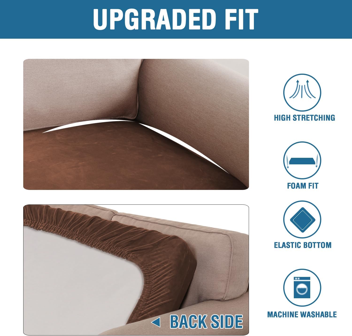 • INCREDIBLY COMFORTABLE VELVET: Products passed GLOBAL RECYCLED STANDARD certificate.1 piece included. Crafted from luxurious velvet plush fabric, feature thick, soft, smooth, anti-wrinkle, no fading, durable as well as highly stretch. Protect your cushion furniture from daily wears and tears, stains, kids, scratches from pet claws, dogs or accidental spills